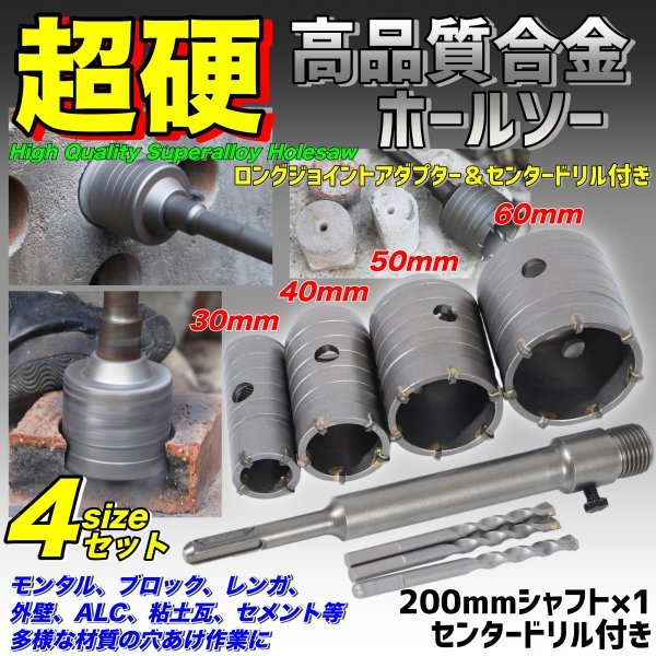 業者様御用達 コンクリートドリル セット ホルソー ホールソー 穴開け sdsプラス シャフト モンタル レンガ ALC 外壁 30mm 40mm 50mm 60mm | |||