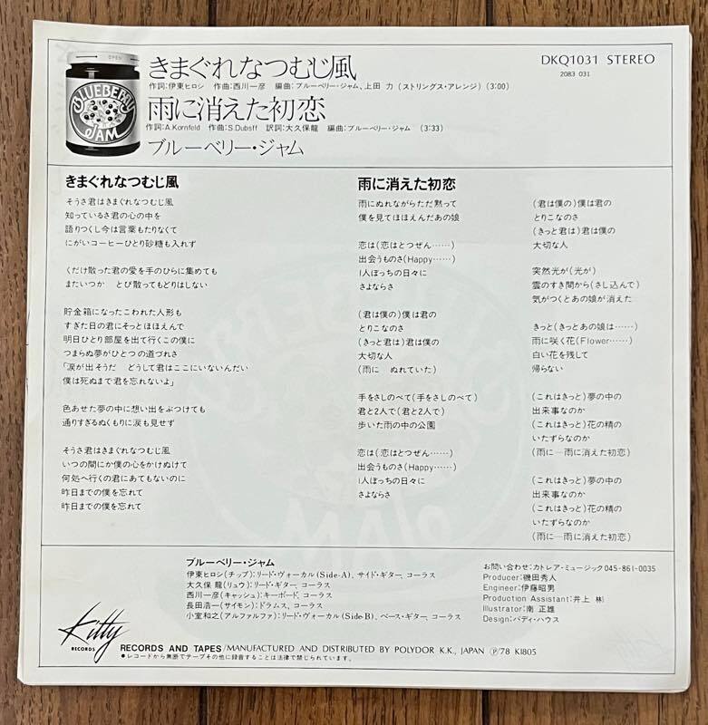 【EP レコード Blueberry Jam ブルーベリージャム / きまぐれなつむじ風・雨に消えた初恋 DKQ1031 カウシルズ 雨に消えた初恋 日本語カヴァー】| 出价者 | 信用 | 价格 | 时间 |