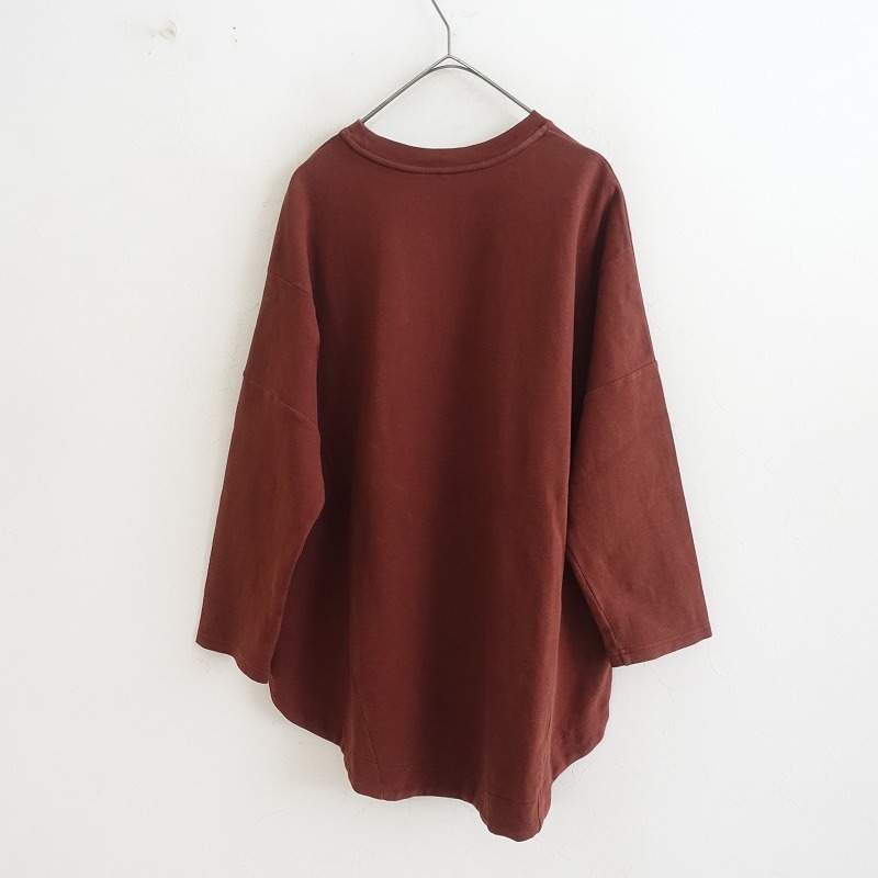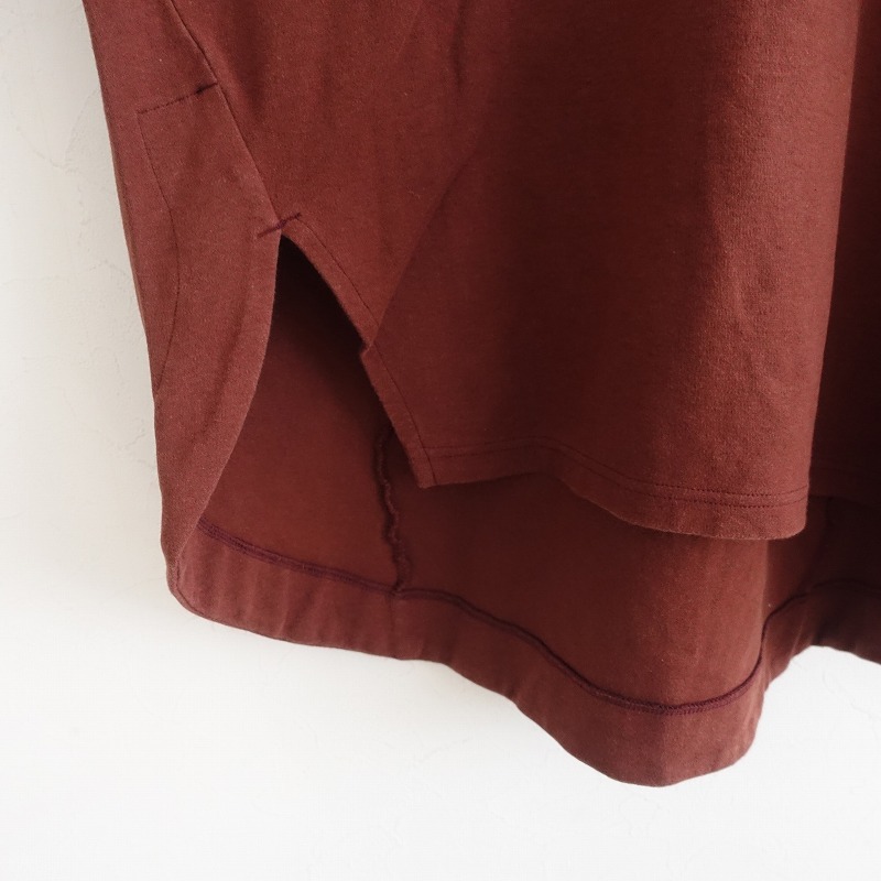 | Brocanteのココンチュニックです。カラーはブラウンで、天竺ニット地です。プルオーバータイプで着脱でき、襟ぐりはリブ仕様で、左裾サイドにBタグ付きです。裾両サイドにスリット入りで、後ろ裾はラウンドカット仕様、後ろ裾丈が長めです。定価(メーカー希望小売価格)13,750円の商品です。 |