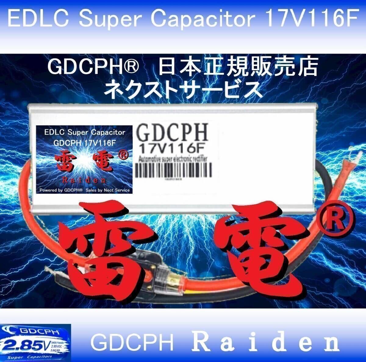 今回、GDCPH製造元メーカーとの日本国内独占販売契約に基づき許可を得て、大好評の上級者向け・大容量ハイグレードモデルのGDCPH 17V116Fを、日本国内正規販売製品として 『EDLC スーパー・キャパシタ 17V116F GDCPH 雷電®』と命名し、新発売となりました!