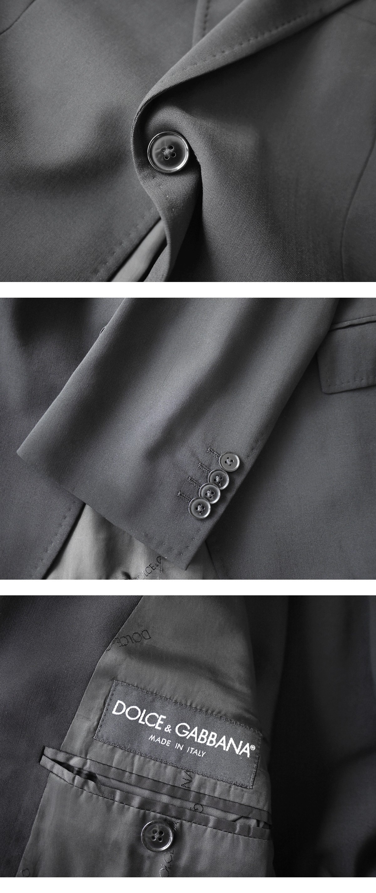 ドルチェ&ガッバーナのウールギャバジンセットアップスーツでございます。ドルチェ&ガッバーナのブラックタグの最上級コレクションラインで、イタリアトップメゾンならではの上質な素材と確かな製法による仕立て、ドルチェ&ガッバーナらしいショルダーラインからウエストにかけての美しいカットラインで、着用時のシルエットはまさに非の打ちどころがない仕上がりです。