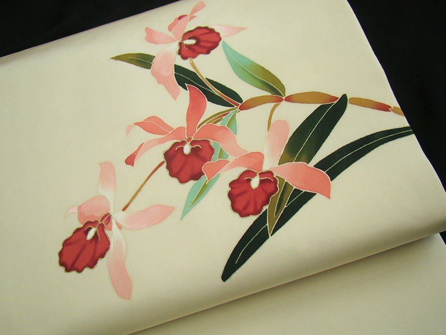 商品の説明 | ●未使用品。 シミ、汚れなし。 ●正絹 しなやかな結びやすい東 藤岳 本加賀友禅の塩瀬なごや帯。 薄いクリーム色地に渋い緑、ワイン色等の蘭の花柄。 たいこ柄。 ※お洒落を演出してくれる本加賀友禅、塩瀬なごや帯です。 帯が素敵ですと、和服姿が一層素敵に見えますので、是非この機会にどうぞ!! 40代~幅広い年代の着物通の貴女に最適! |