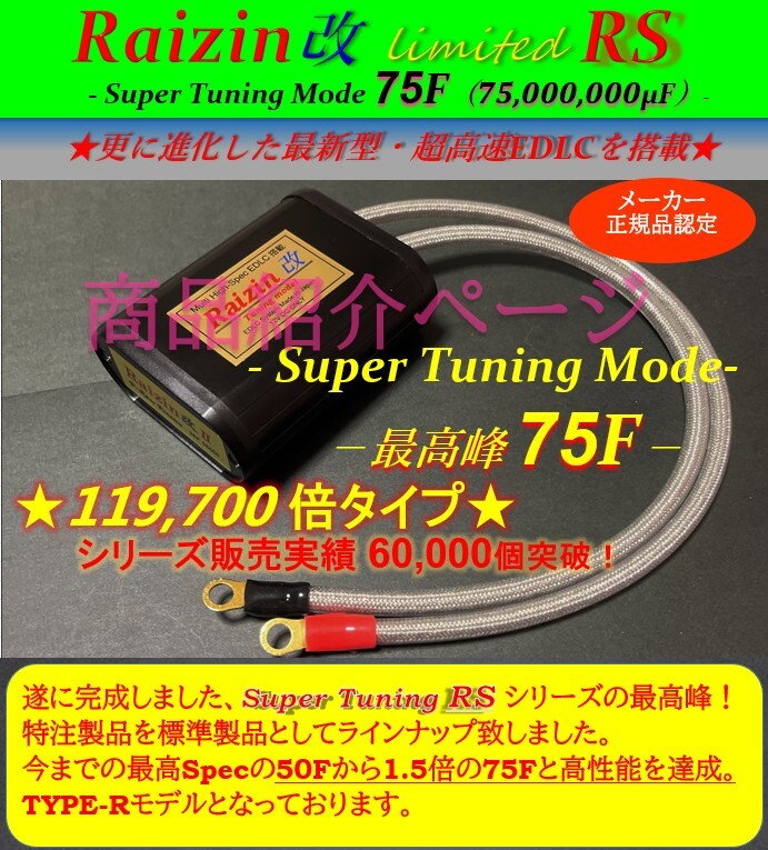 ■Raizin改■ 高性能 高品質 最高の実績! ●トルクもパワーも全てアップ!燃費もGOOD! "サーキット" ・ "ラリー" ・ "ジムカーナ"等様々な所で口コミで広がり、 実績を重ねた伝説のパーツのEDLCタイプの製品が いよいよオークションに登場 ホットイナズマの容量を倍増したパワーで威力を発揮!! 車・バイク共にカッ飛びます!! アーシングとの併用もOK。 取り付けは簡単です。 バッテリーに装着するだけ!(10分程度) オレンジを+、黒を-に接続するだけ。 中古車センター様や、ディーラー様にも大好評! ★高性能Raizin専用部品搭載仕様★ ※高性能な部品を搭載しており、内部回路でコントロール! ※高品質な部品が搭載、専門の知識があればヒューズは不要です。 ※意味のない部品は装着されていれば故障率もアップします。 ※ヒューズの確認を毎日しますか? 本物・正規品のRaizinは、ID"pcjr"のみです。 粗悪部品搭載の類似品にご注意ください。 ※ラベルも真似して製作されており、 ※文章まで丸コピーされていますのでご注意ください。 悪質な電装業者でリストに掲載されております 商品の出品リストは『ココ』をクリック! |