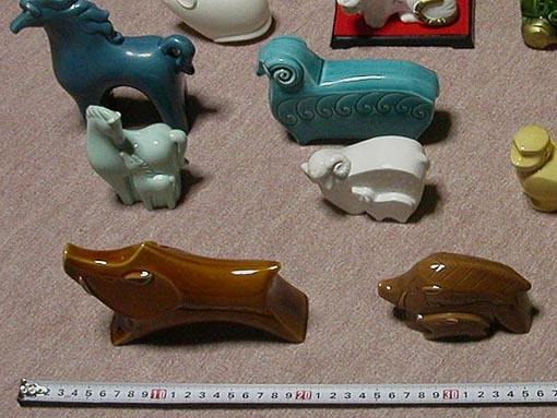 ●新規の方や悪い評価のある方の入札はご遠慮下さい。どうしてもと言う方は、入札前に質問欄より連絡お願いします。連絡のない場合は、入札及び落札頂いても落札者側のキャンセルにさせて頂き、悪い評価が付きますのでご了承下さい。終了後48時間以内に決済手続きを厳守でお願いします。48時間以内に決済頂けない場合は、キャンセル扱いで削除させて頂き悪い評価が付きますのでご注意下さい。商品到着後24時間以内に、必ず受け取り連絡を速やかにお願い致します。説明は必ず最後までお読み頂き、スムーズな取引の出来る方でお願い致します。●押入れの奥から出て来た、干支の置物です。陶器で比較的小さめになります(画像9枚目、10枚目参照)。子(ねずみ)×1 / 寅(とら)×1 / 辰(たつ)×2 / 巳(へび)×2 / 午(うま)×2 / 未(ひつじ)×2 / 申(さる)×1 / 戌(いぬ)×2 / 亥(いのしし)×3 の 9種類16個になります。子と寅の感じが他と違います。ざっと見たところ割れや欠けは見当たりませんでしたが、入念なチェックはしていませんので、見落としがあるかもしれませんが、ご了承頂ける方でお願いします。その他、昭和時代の古い物になりますので、薄汚れや擦れがあるかもしれませんので、気になる方はくれぐれもご遠慮ください。気になる所がある場合は入札を控えるか質問して下さい(留守がちで回答出来ない場合がありますが解消するまで入札しないで下さい)。取り消しやキャンセルなしノークレームの返品なし厳守で、2日(48時間)以内厳守で簡単決済が可能な方のみでお願いします(出来るだけ速やかにお願い致します)。発送は、ゆうパック80サイズで大阪から着払い発送になります。もし時間指定が必要な場合は、午前中、12~14時、14~16時、16~18時、18~20時、19~21時 からお選び頂き、支払い完了の連絡時にお知らせ下さい(連絡がない場合は時間指定なしで発送致しますので、ご了承下さい)。発送は平日のみで、土日祝の発送は出来ませんので、週末や連休の場合は休み明けになりますがご了承下さい。商品到着後24時間以内に、必ず受け取り連絡を速やかにして頂ける方でお願い致します。