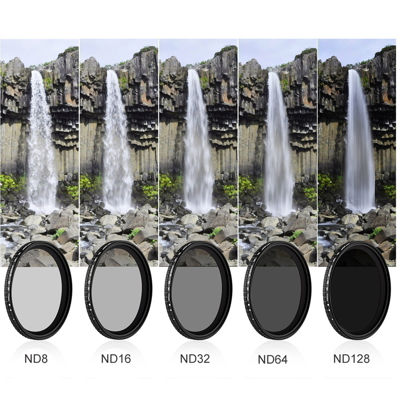 減光量を調整できる可変式 バリアブル(可変式)NDフィルターは、フィルターの前枠を回転させ、自在に減光量を調整できる画期的なアイテムです。光量は、ND8からND128まで調整でき、撮影によってフィルターを取り替える手間が解消されます。また、可変フィルター特有の高濃度付近でXムラが出る現象を最小限に抑えました。 NDフィルターならではの幻想的な表現が楽しめる レンズの解像度を保ったまま、任意のシャッタースピードで長時間露光撮影が可能。色彩に影響を与えず光量だけを減少させるので、滝や渓流の流動的な描写や車の光を捉える光跡夜景、日中の街角で人混みを消すなど、幻想的で多様な表現が可能です。