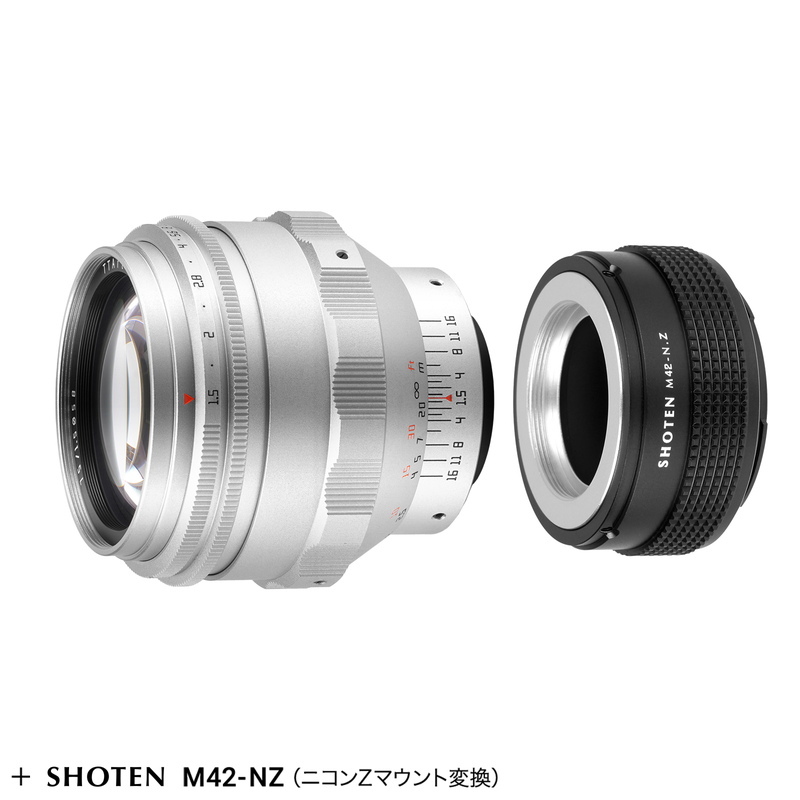 | マウント変換アダプターで様々なカメラに対応 銘匠光学(めいしょうこうがく)「TTArtisan 75mm f/1.5」と、ニコンZマウントアダプターのセット商品です。 レンズ装着時の指標位置を調整可能