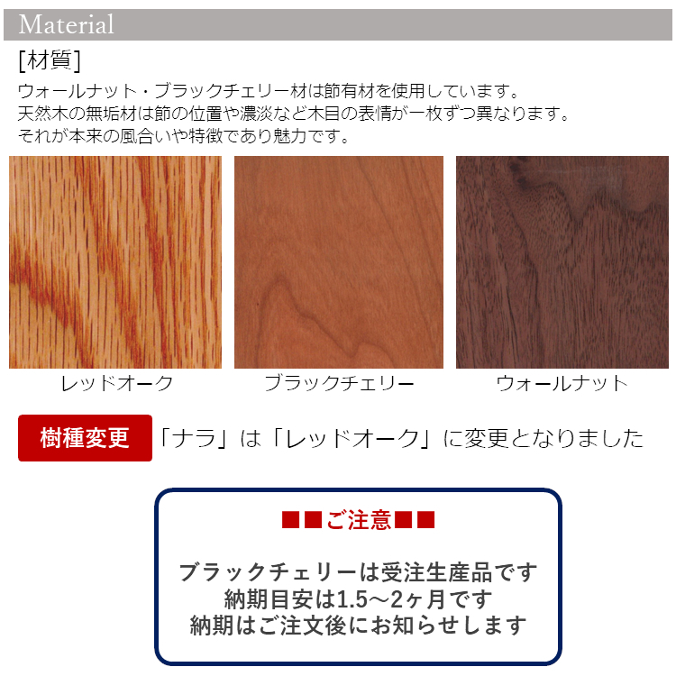 ★★ブラックチェリーは受注生産です。他の材も在庫が無い場合、受注生産品となる為、ご注文より発送までに約1.5~2か月を要します。詳細な納期は前もってお問い合わせください。★★