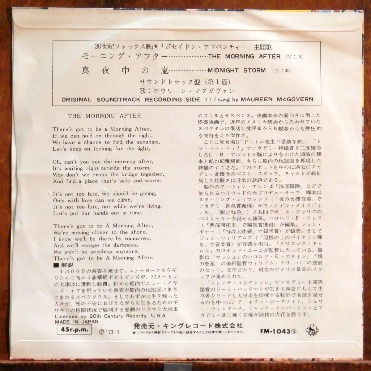 2511b 【Artist】モウリーン・マクガヴァン #Maureen McGovern A) モーニングアフター B) 真夜中の嵐 【Release/Label/Note】 1973 / FM-1043 / キング *映画「ボセイドン・アドベンチャー」OST 【Condition】 Jacket/Record:B/A- (国内盤/袋ジャケ) ■■■ ■■■ ■■■ ■■■ ■■■ ■■■ ■■■ ■■■ 【状態・盤質 説明】 S・新品未開封など A・綺麗・キズ等も無く、痛みも薄い B・多少痛み・キズなど見られる C・痛み多・キズ多く痛み多 その他、+ - で補足しています。 *中古という事をご理解して頂ける方のご購入をお願い致します。 ■■■ ■■■ ■■■ ■■■ ■■■ ■■■ ■■■ ■■■ |