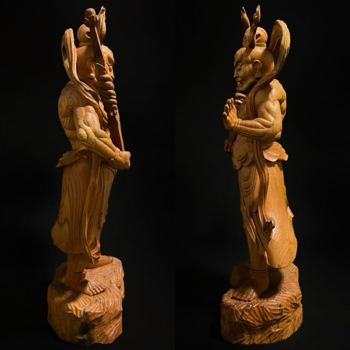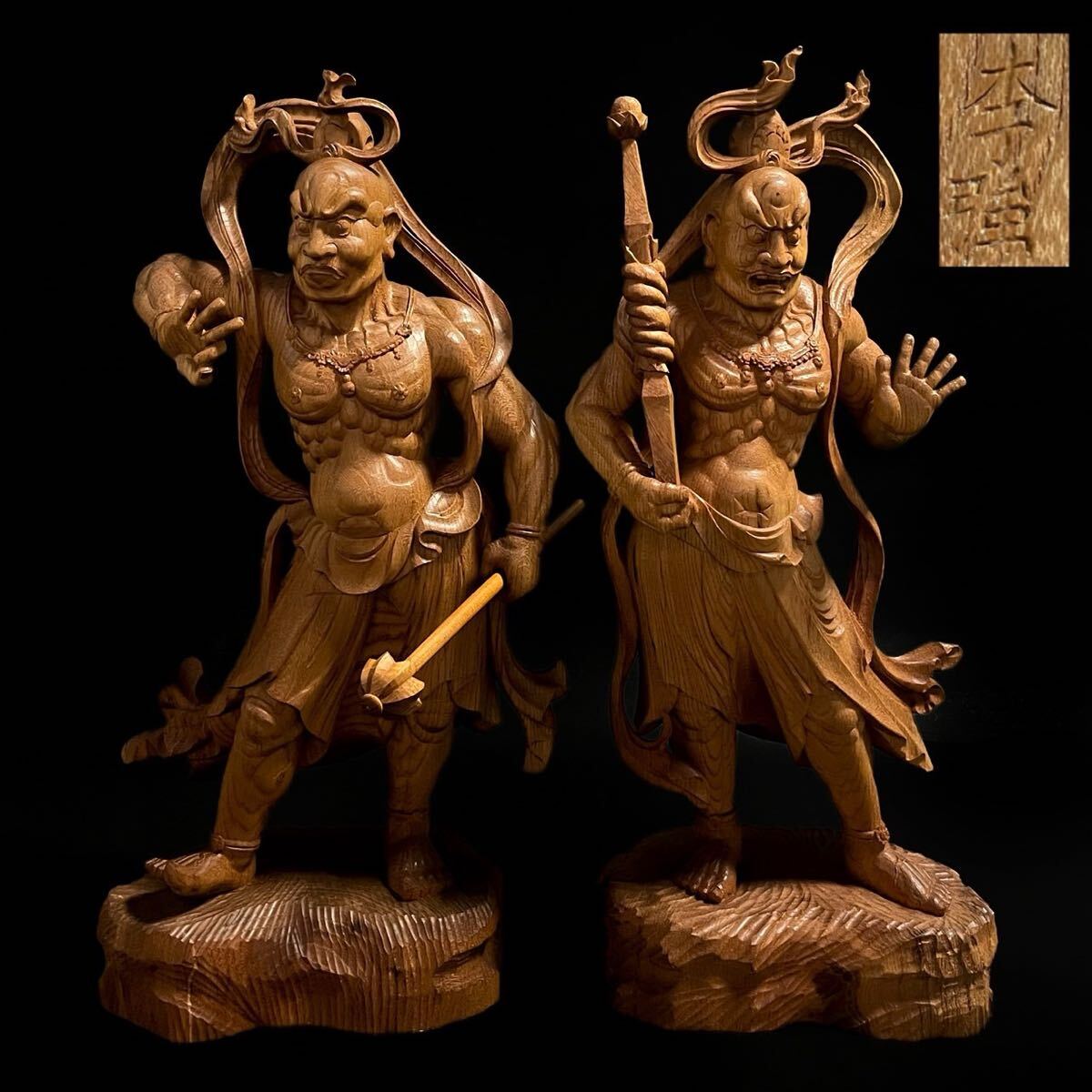 仏教美術 金剛力士像 仁王像 阿吽像 一対 細密 木彫 仏像 高さ約41.5cm(1b1016y1 5)