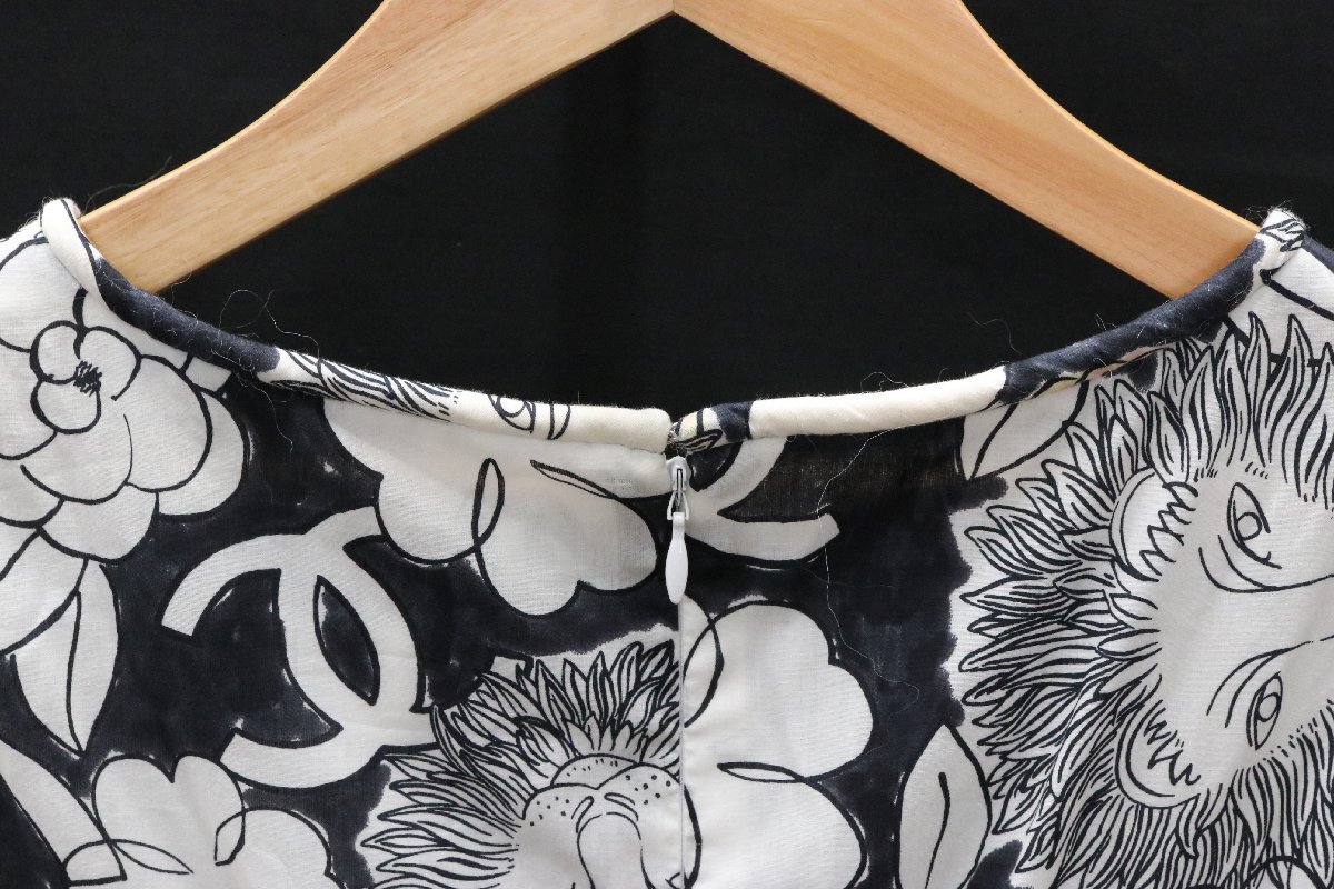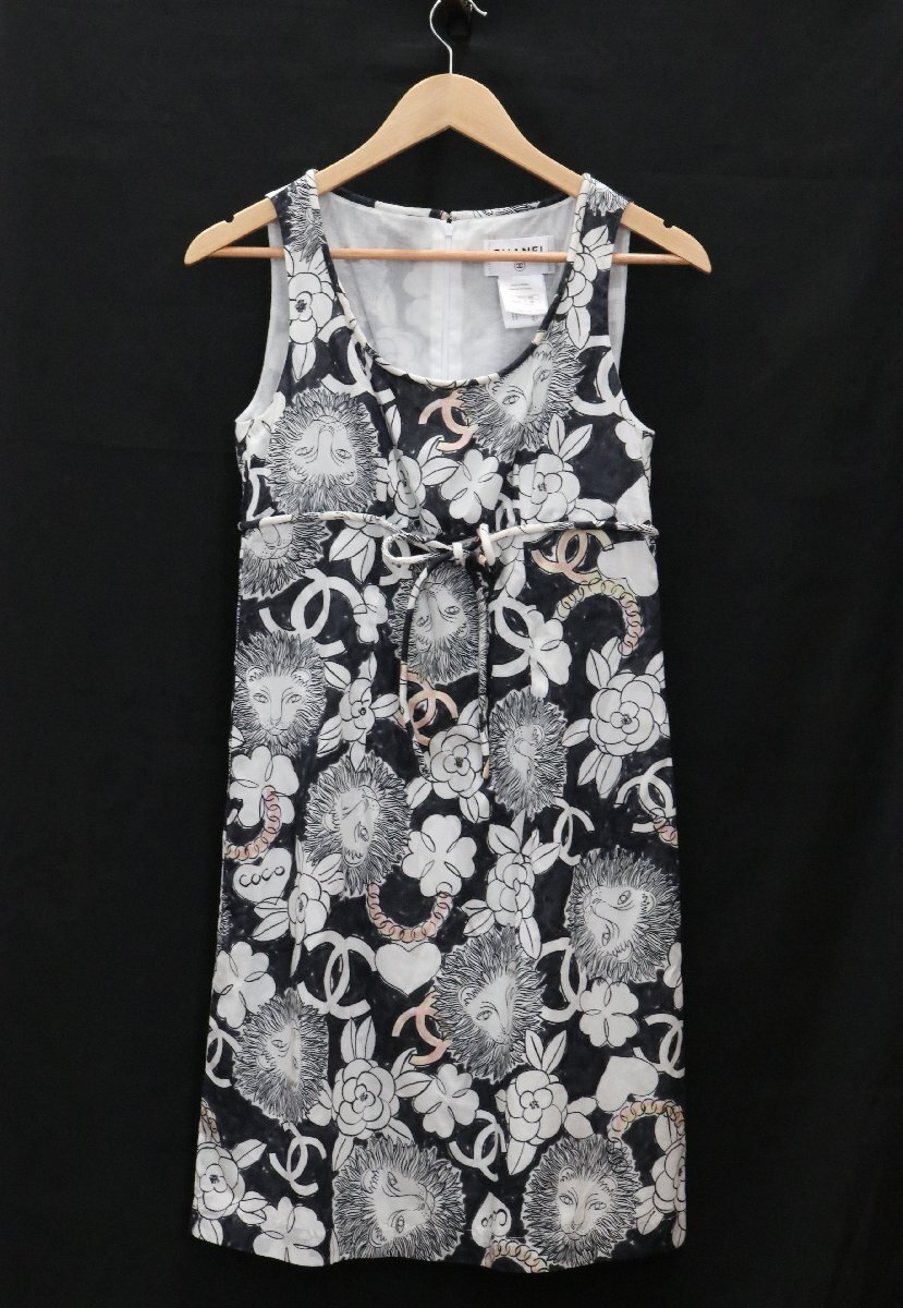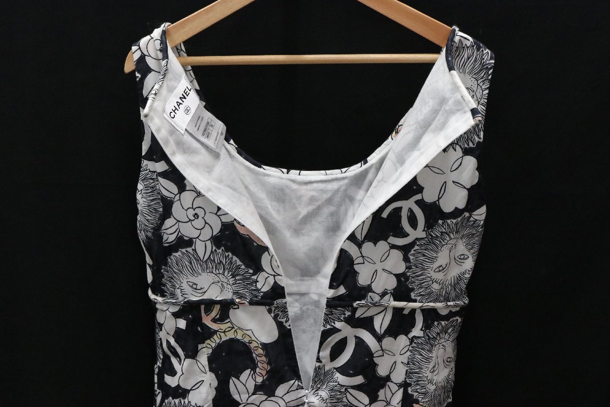 | CHANEL シャネル P37791 ノースリーブ ワンピース ココマーク カメリア ライオン ブラック ホワイト サイズ38 コットン | ||