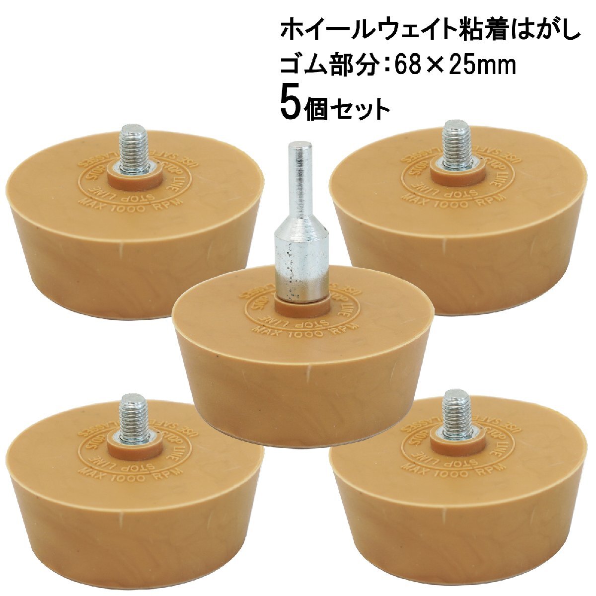 | 特 徴 | バランスウェイトを剥がした際の接着剤を確実に除去 内容物の除去: ゴム製消しゴムホイールは、ビニール、デカール、グラフィック、両面成形テープ、 ストライプ、トリムを車のトラックや類似の車両から取り除きます。 |