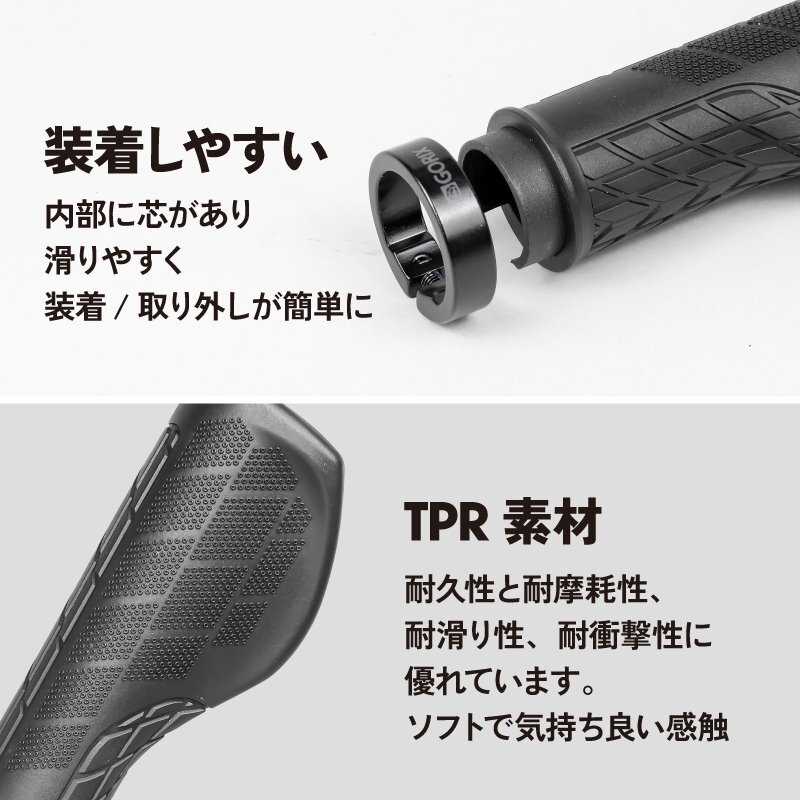 長時間のライディングに向いているエルゴ形状は、手首や掌の疲れの軽減と高いフィット感が期待できます。