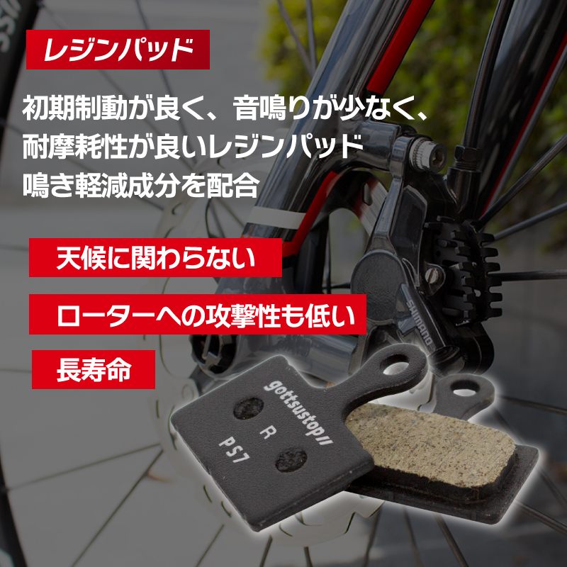 自転車のディスクブレーキパッドの交換に最適なレジンタイプのパッドです。 性能が安定し初期制動が良く音鳴りが少ない。 また[耐摩耗性が良い]レジンパッドです。 [鳴き軽減成分を配合] [ブレーキ効果が向上] [軽量] 寿命が長く、天候に左右されずに安全お使いいただけます。 商品内容パッド左右ペア、押さえバネ付き 対応BR-RS505、BR-RS805、BR-RS405、BR-RS305/GRX BR-RX810、BR-RX400 デュラエース BR-R9170 アルテグラ BR-R8070、BR-R7070 材質レジン サイズ2.8×3cm(フィン無し) | |