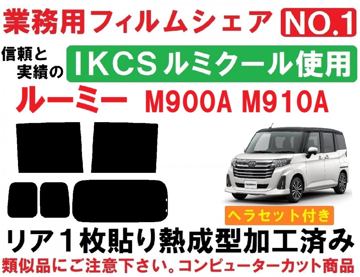 | ルーミー用『IKCSルミクール使用』1枚貼り成型加工済みフィルム リア5面セットです。(専用施工液付き) ・信頼の品質と実績で永い間業務用フィルムとして選ばれ続けているIKCS製品です。 ・業務用フィルムの中で最も信頼性の高い、ベストセラー商品です。 ・詳しくはIKCS株式会社HPをご覧ください。 ※『ルミクール』は当店でも 施工実績・販売実績NO.1の超人気商品です。 平成28年11月~ ルーミー ルーミーカスタム M900A M910Aに適合します。 ※適合等 ご不明な点など有りましたら、お気軽にご質問下さい。 ◇◆◇当商品には、画像2のヘラセットが付属します◇◆◇ ■滑りの良いシリコンタイプのゴムヘラ スムーズに水切り(清掃)・貼り付け後の水抜きが出来ます。 実際の業務でも色々な物を試しましたが、シンプルなこの形状・このメーカー・このグレードの物が1番使いやすいです。 柔軟性が有りガラス(フィルム)に密着するため、フィルム折れも防げます。 ■使いやすい厚みとコシの有るプラヘラ 形状は似ていても各メーカーにより硬さ・厚みなど色々と有ります。 慣れていない方でも扱い易いように少々柔らか目の物になります。 ヘラ先にはフッ素樹脂加工のクロスを貼って有りますので、滑りが良くキズを防止します。 ■ワイプオール(不織布ワイパー) 布同様の丈夫さと紙の持つ吸水性を発揮。糸くずの発生が無く均一素材のため異物混入の心配が有りません。 施工前のガラスクリーニング~施工時にフィルムが触れる可能性の有るガラスの周りのゴム部品の拭き取り清掃~吸水等に大変便利です。 全て実際の業務に使用している物で、その中から使いやすい物を選んでいます。 ヘラセットがご不用の場合、フィルムのみの商品も有ります。こちら ◇◆◇精密コンピューターカット◇◆◇ 貼りやすさを最優先に各部のサイズ・形状など微調整し、改良を重ねた独自のデータを製作。 高精度な最新・大型カッティングプロッターによるカットで正確で滑らかなカットラインを再現しています。 施工業者だからわかる、貼りやすいサイズ・形状に仕上げています。 ◇◆◇リア1枚貼り成型加工済み◇◆◇ リアガラスの湾曲に合わせて熱成型加工して有りますので、平面に貼るのと同様にたるみが出ず1枚貼り出来ます。 ※最適な状態に成型加工して有りますので、ヒートガン(ドライヤー)等は不要です。 ◇◆◇専用施工液付属◇◆◇ 軽視されがちな施工液ですが、貼りやすさに大きく関わる部分になります。中性洗剤などで代用せず、必ず付属の専用施工液をご使用下さい。 濃度については車種・季節などにより変わりますので、個別にお知らせ致します。 国内シェアNO.1の『IKCSルミクール』を使用しています。 ルミクールは経年退色が極めて少ない着色加工技術はもちろん、安定した冷暖房効率をアップする熱線遮断効果や断熱効果、内装を守り日焼けを防ぐため、全てのフィルムで99%の紫外線カットを実現しています。 ガラスの飛散防止効果で高い安全性を保ち、ハードコートタイプなのでキズにも強いカーフィルムです。 改良を重ねながら 信頼の品質と性能で、永い間業務用フィルムとして選ばれ続けています。 ■フィルムの種類■ 可視光線透過率 3% NS-003HC 可視光線透過率 7% NS-008HC 可視光線透過率13% NS-015HC 可視光線透過率20% NS-020HC 可視光線透過率30% NS-030HC 可視光線透過率46% NS-045HC ■全商品、キズに強いハードコート・紫外線(UV)99%カットです。 ※可視光線透過率が低くなるほどフィルムの色は濃くなります。 サイドとリアで濃さを替えたり等、可能です。 部分的にフィルムが必要になった場合、単品販売も承ります。 他にもルーミー用フィルム、各種出品中です。こちらもご覧ください。 ご不明な点など有りましたら、お気軽にご質問下さい。 | ||