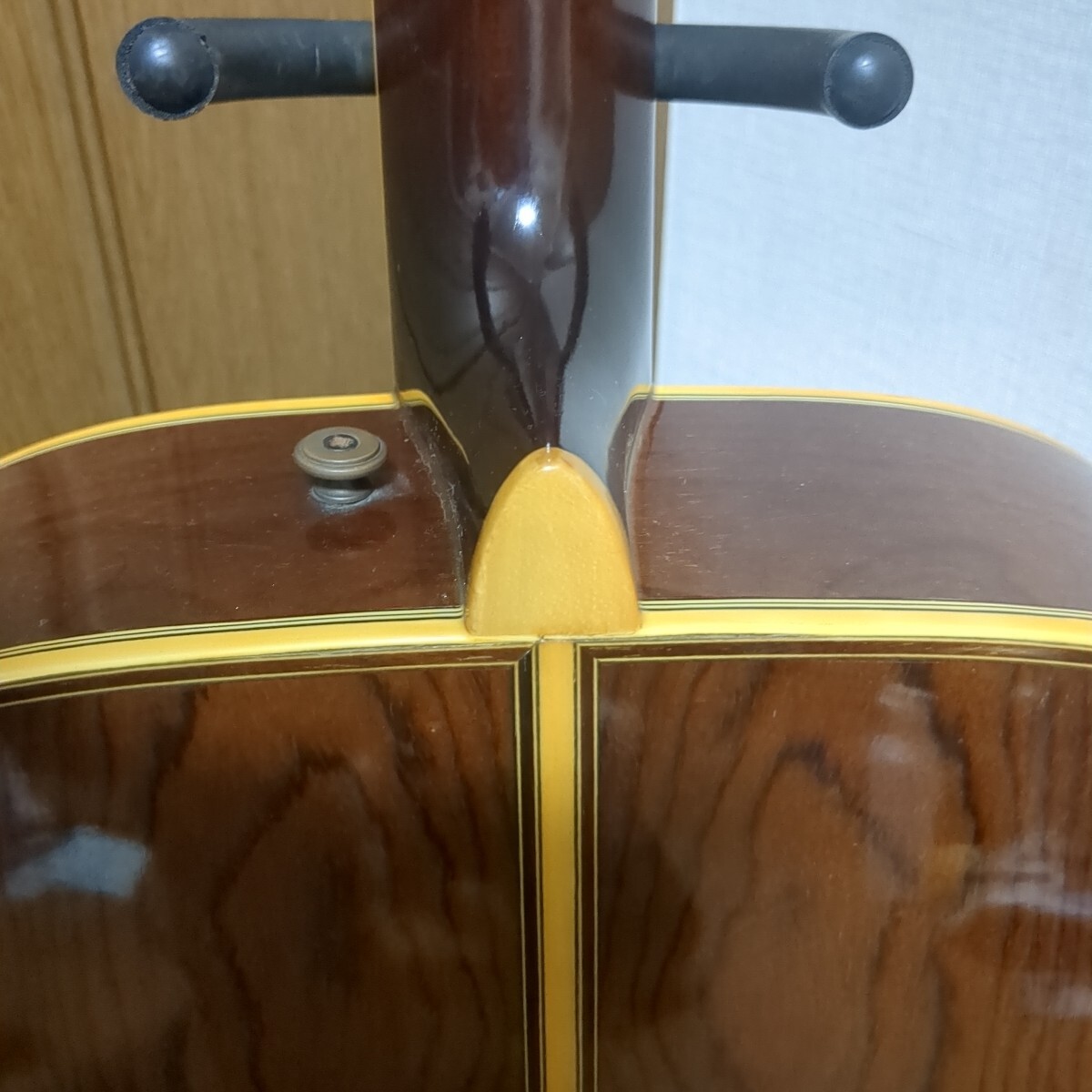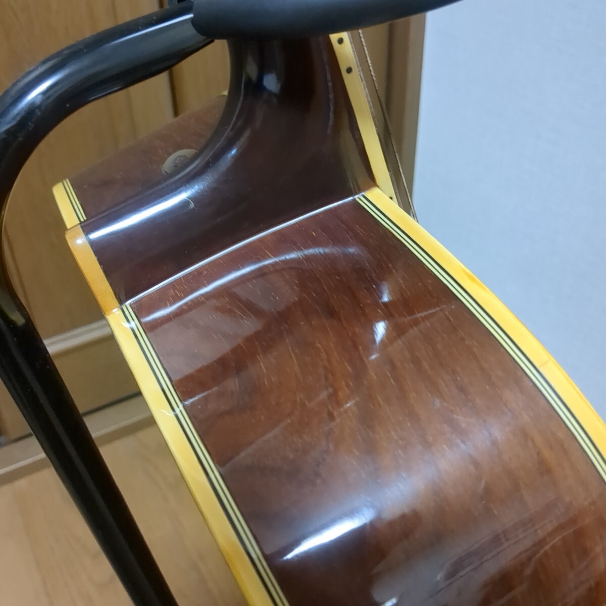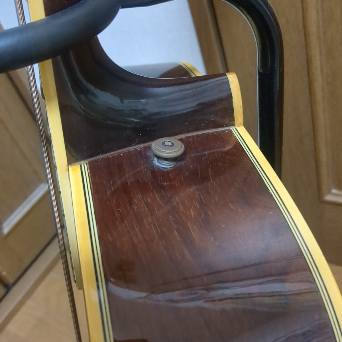 ギターのストラップの金具がついてます。ロッド未確認、年代物ですのでジャンクでお願いします。エアパッキンで包み、段ボール下に敷くのみの梱包です。