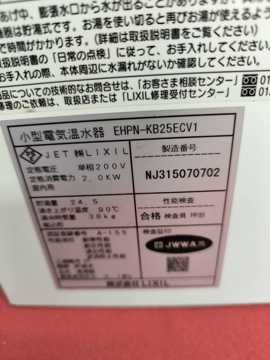 | LIXIL(リクシル) 小型電気温水器(ゆプラス)25L EHPN-KB25ECV1 | ||