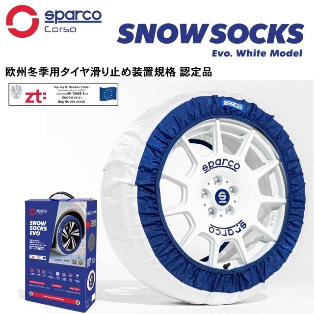 ★商品説明★ スパルコスノーソックス EVOモデル ホワイト Lサイズ スタッドレス タイヤチェーン 布 非金属 布チェーン 布製タイヤチェーン タイヤソックス 布製タイヤ滑り止め 簡単 軽量 滑り防止 収納 雪道 グリップ タイヤカバー スノーチェーン 非金属 245/55R16