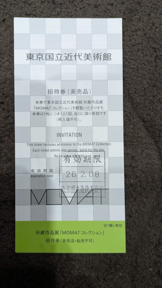 2026年2月8日まで有効な東京国立近代美術館の招待券。MOMATコレクションを鑑賞できます。| 出价者 | 信用 | 价格 | 时间 |