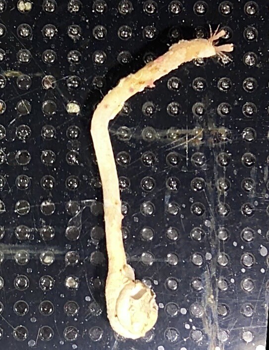水深110メートル付近から上がってきたリュウウグウカズラの中で暮らすオキヤドカリさんです