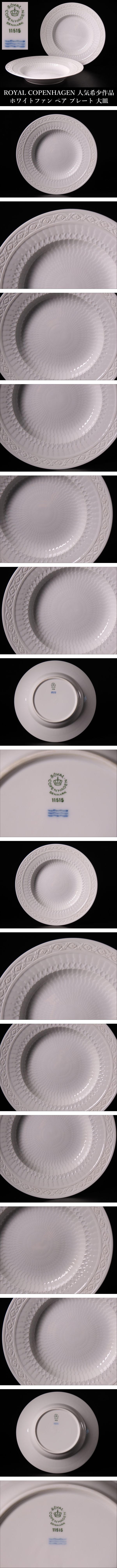 【ONE'S】ROYAL COPENHAGEN ロイヤルコペンハーゲン 人気希少作品 ホワイトファン ペア プレート 大皿 ディーププレート 二枚揃 西洋美術 | |||