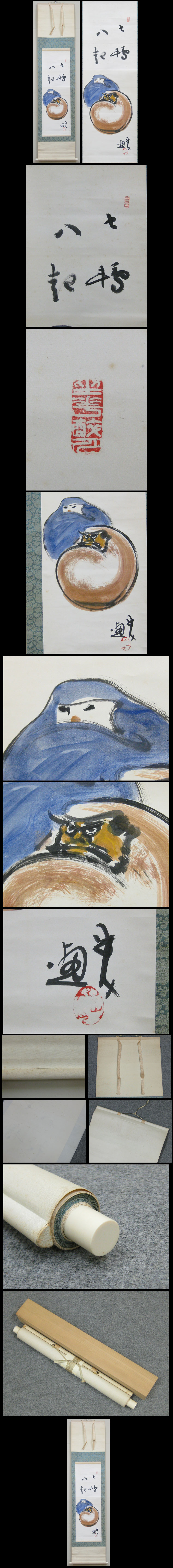 【篁牛人】1901-1984 昭和時代の日本画家。明治34年10月10日生まれ。 商工省工芸展で受賞をかさね,昭和15年ごろからピカソに傾倒し絵画に転向。 仏教や老荘思想などを主題に,渇筆技法で独自の水墨画をえがく。 昭和59年2月25日死去。82歳。富山県出身。高岡工芸学校卒。 幼名は光磨。本名は浄信。作品に「老子出関の図」など。 ★商品サイズ★ ■掛軸 204×48cm ■作品 108×37cm ★商品の状態★ 作品に時代のしみ汚れ、皺があります。 表具に時代のしみ汚れ、皺、少しの切れ目があります。 裏側に時代のしみ汚れがあります。 ご承知のうえご入札をお願いします。 時代など詳しくは画像にてよく確認のうえでご検討いただければと思います。 どうぞよろしくお願いいたします。 ★真作と明記しております作品については、 万が一真作でない場合は、落札金額・送料をご返納致します。 また鑑定するにあたって、公的機関での鑑定料・交通費・その他の経費は ご落札者様ご自身のご負担になります。 鑑定についての保証期間は30日とさせて頂きます。 |