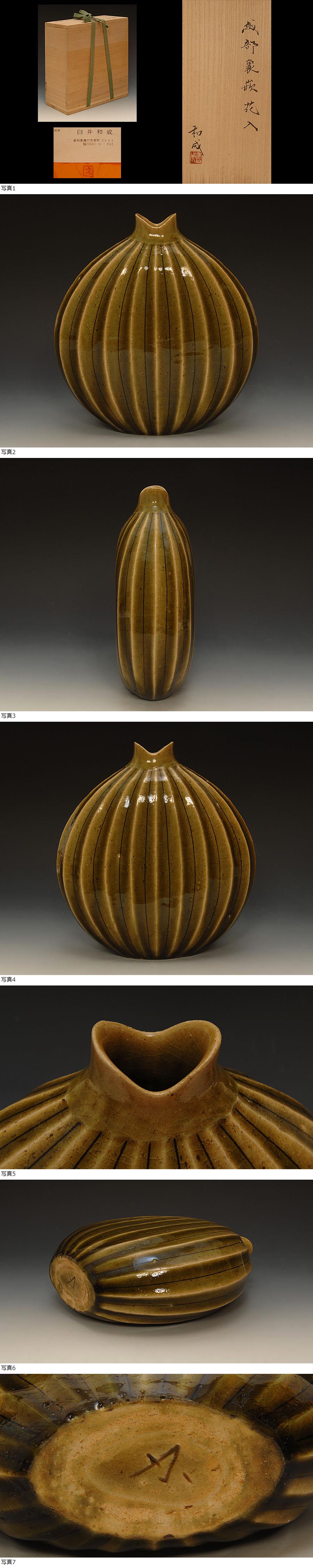 ☆星夢☆19 雍和窯 臼井和成 織部象嵌花入 共箱 茶道具 [浏览原始页面]