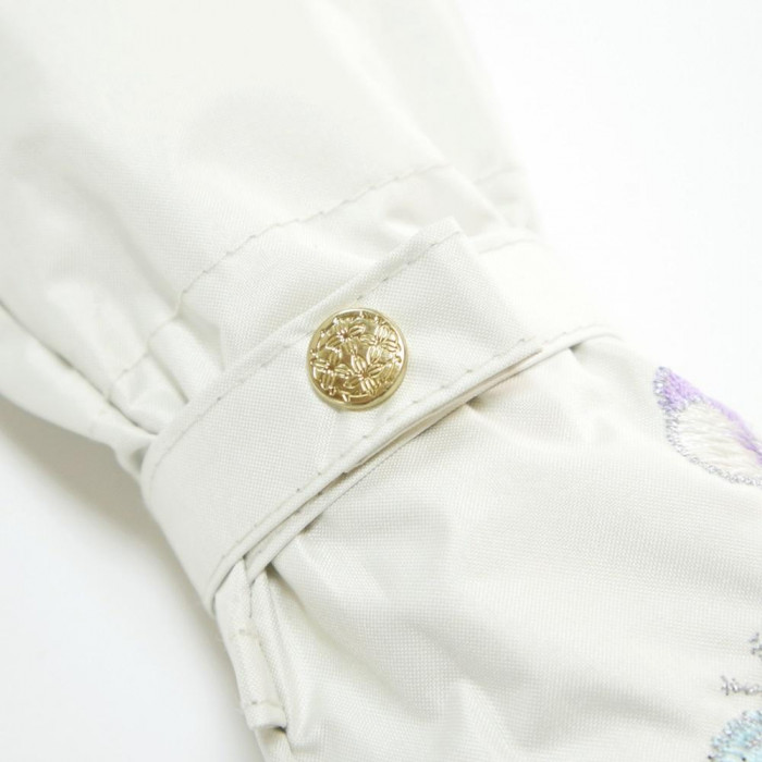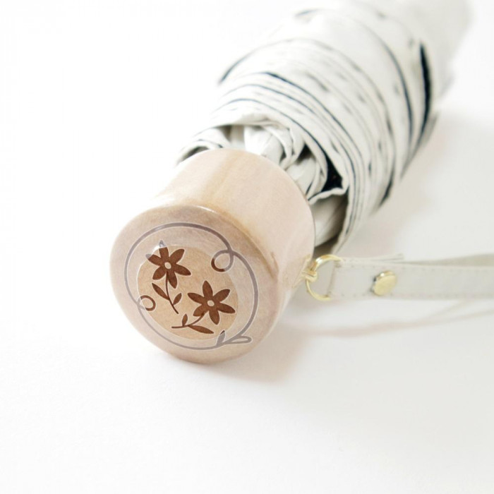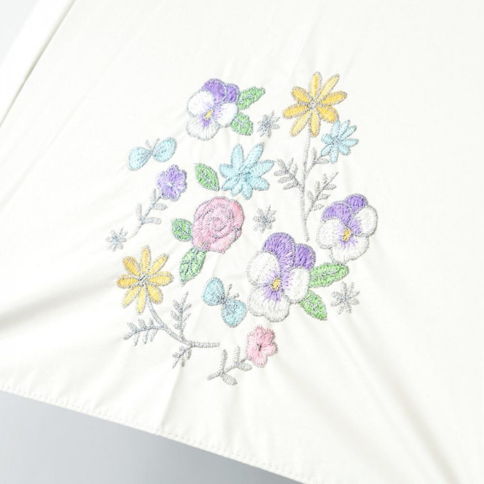 | スカラップや刺繍が上品で華やかです。持ちやすくて軽いゴールドアルミ曲がり手元や、焼印付きの白木寸胴手元もかわいい晴雨兼用傘です。ポリウレタン樹脂コーティングで遮光性やUVカット機能はそのままでサイズを50cmまでコンパクトにした折りたたみ傘です。 |