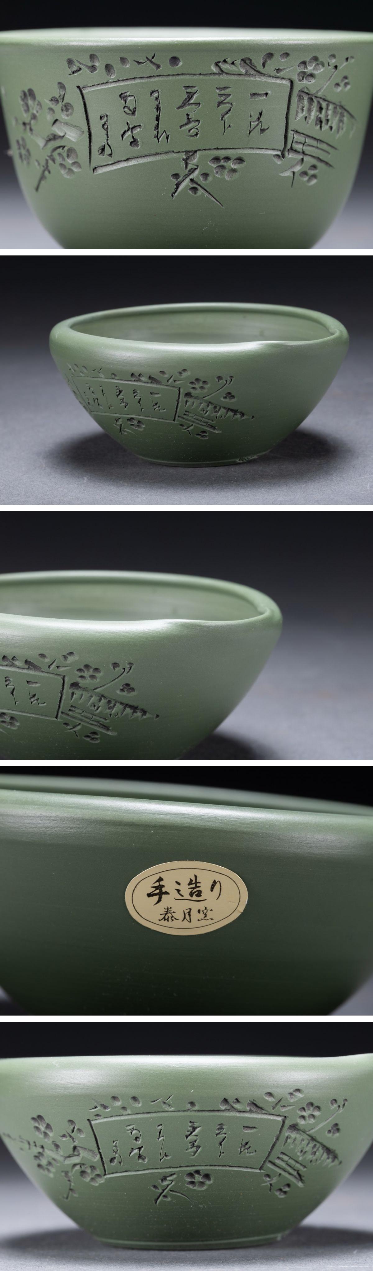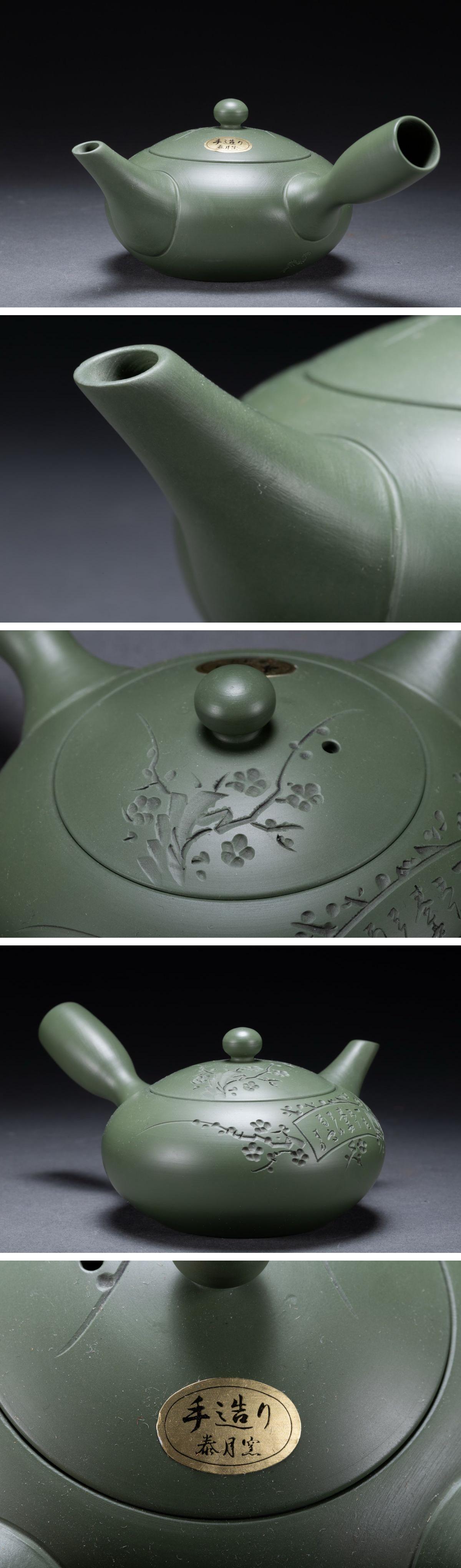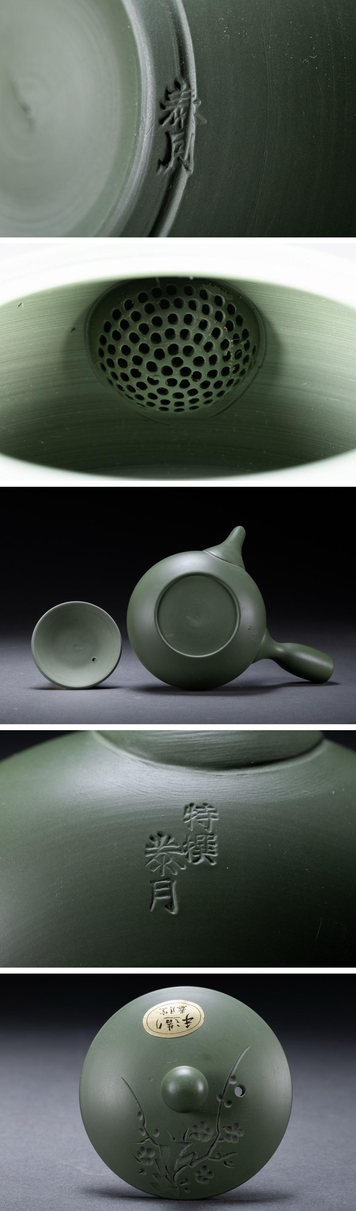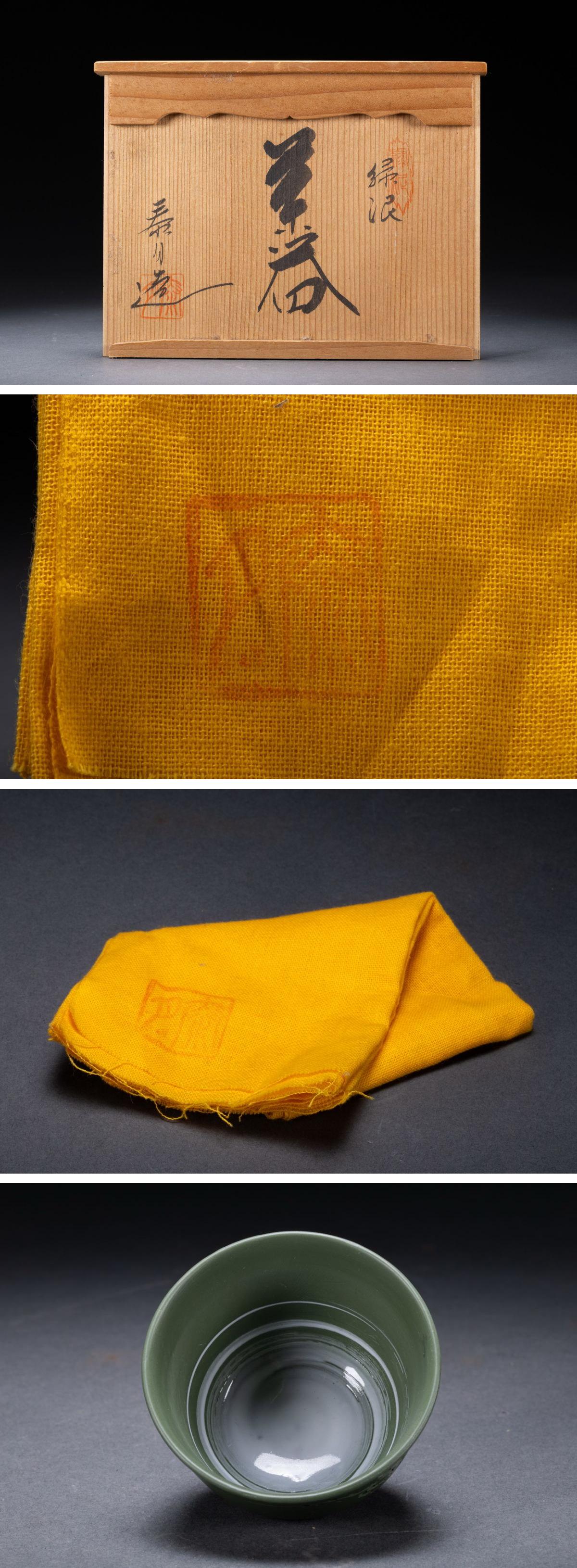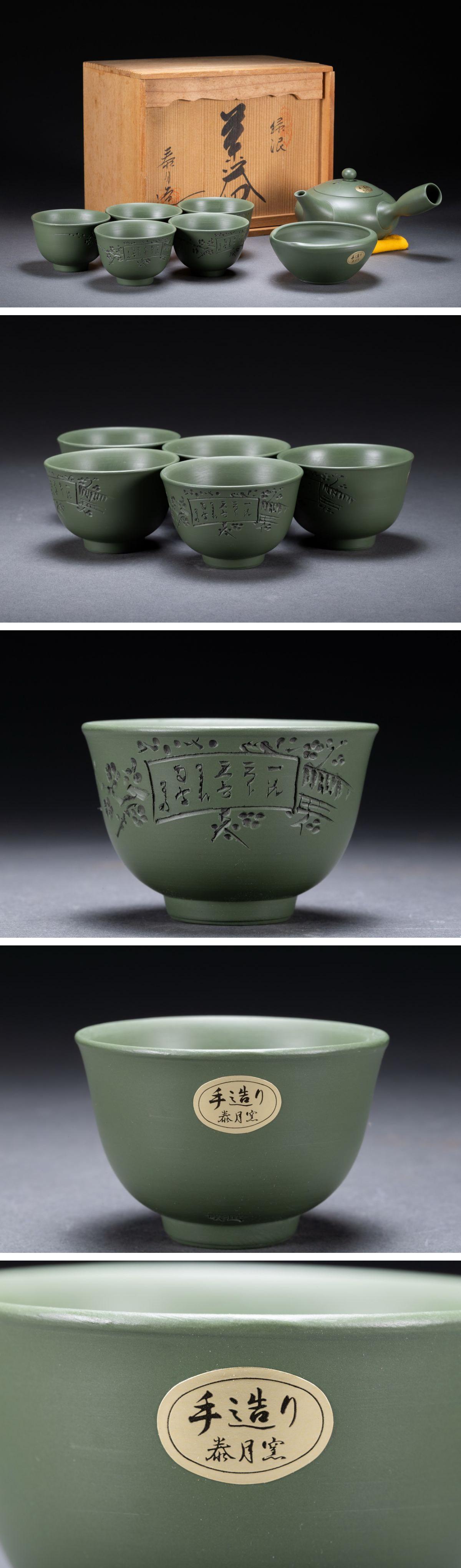 【雲錦】1円から 常滑焼 緑泥「泰月」造 茶器揃い 茶道具 直入識箱 共布 真作保証 美術品7L10-127S05