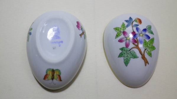 | ヘレンド タマゴ型のボックスです。 金彩が薄くなっているような所がありますが、光の加減と金彩の塗り具合でそんな感じに見えます。剥げてはいません。 お箱は、ありません。 お気にいられましたら、ご入札のほど宜しくお願い致します。 商品:ボックスのみ ■ 商品サイズ 高さ5㎝ 横5.5㎝ 長さ7.4㎝ 重さ70g ※素人採寸の為 少々誤差が生じるかも知れません。 ■ 画像の商品のみです、撮影のための備品等はお付け出来ません。 ■ 他にも出品させて頂いてます、良かったら覗いて見て下さい。 ■ 尚、こちらに出品している商品をほかのサイト等に出品はしてません。 だけです。同じ画像、説明文を使用しててもそれは違います。偽物です。 ![]() | |||