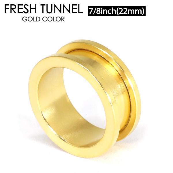 フレッシュ トンネル ゴールド 7/8インチ(22mm) GOLD アイレット サージカルステンレス316L カラーコーティング ボディピアス ロブ 22ミリ