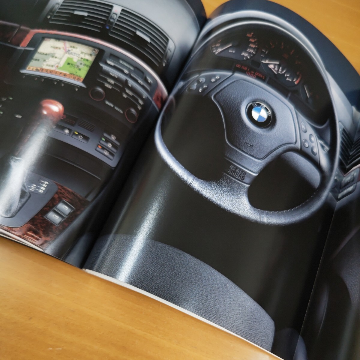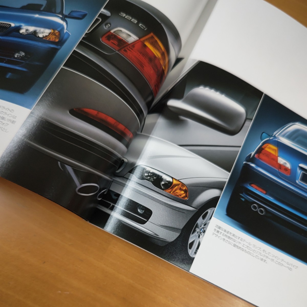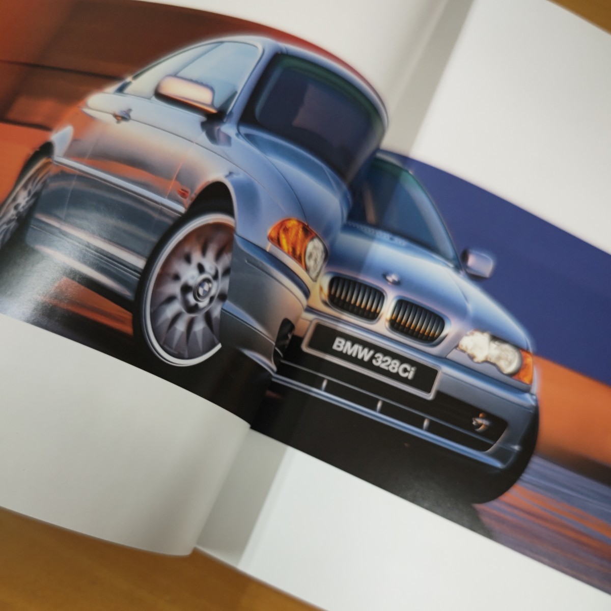 E46前期超人気車両BM3クーペ。この時代一番人気の328Ciこの専用カタログになります。中ページ1か所カタログ下に小さな折れ跡(写真8)表紙したにキズ(写真10)。どちらもたいして気に成らない程度です。ノークレームノーリターンでお願いします。