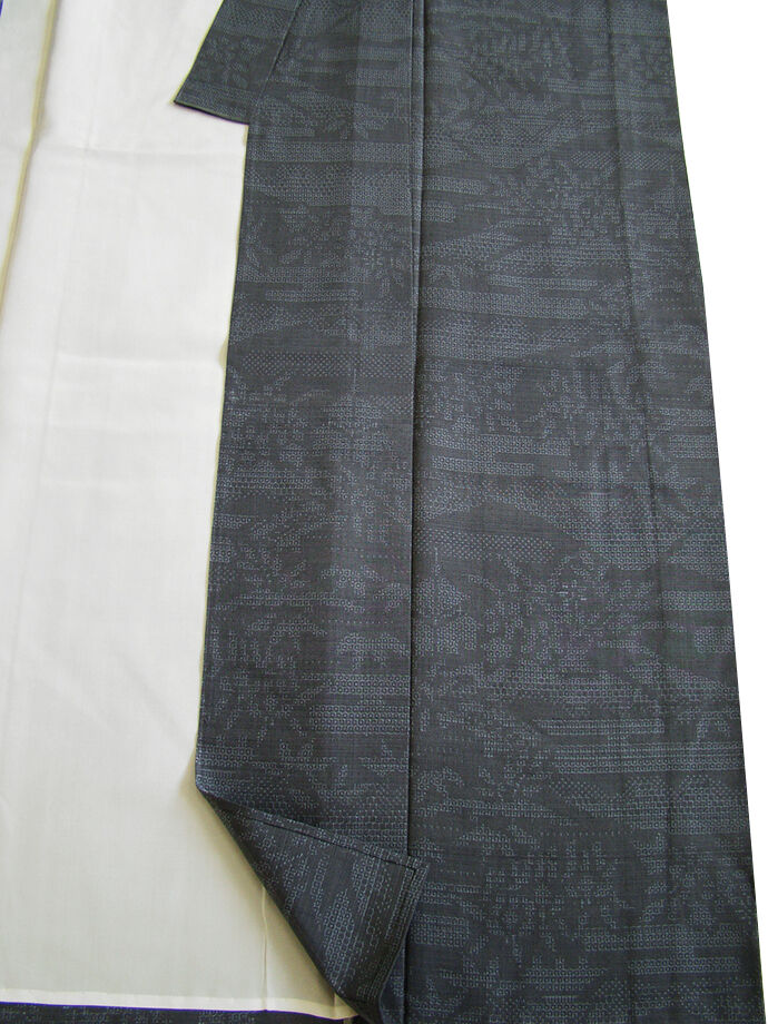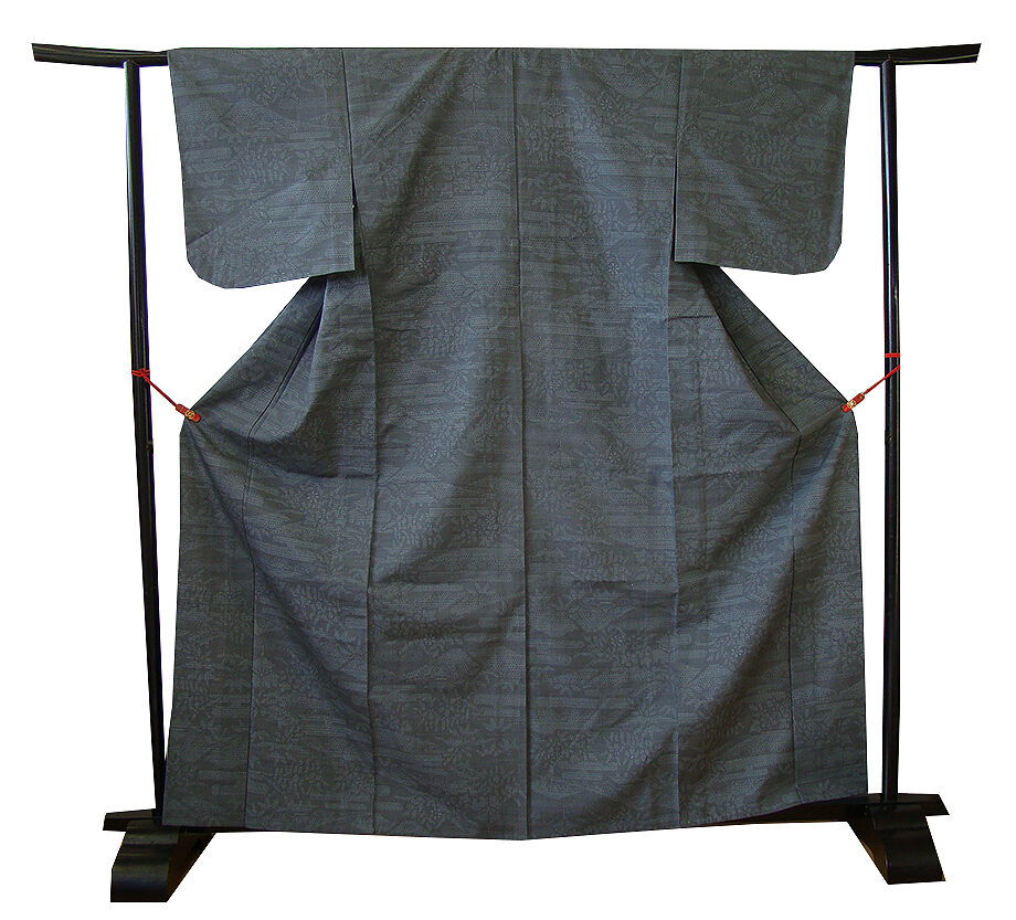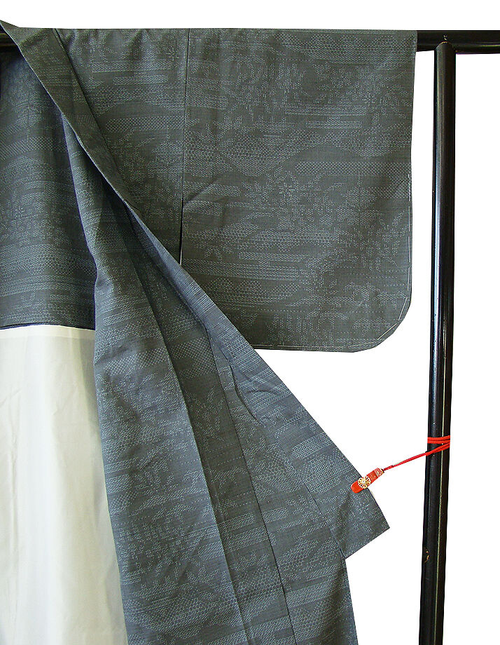 | 商品説明 | こちらのお品は「単衣」ですので5月、6月、9月にお召頂ければと思います。 着物には、大きく分けて「袷(あわせ)の着物」と「単衣(ひとえ)の着物」と「夏着物」があります。 反物(表地)を着物に仕立てるときに、裏地類をつけるものを袷の着物、 つけないものを単衣の着物と呼び、胴裏や八掛といった裏地がつかない一枚ものの着物です。 また裏地がないため、座る時などにヒップのラインが目立たないよう、 居敷当て(いしきあて)の生地をつけることもあります。 居敷当ては付いておりません。 しなやかでさらりとして手触り良く着心地良い涼やかな風合いの十日町紬地は、 渋い錆鼠色地に藍鼠色の亀甲の霞文や草木柄の織柄が 洒落感高い着物姿を演出しております。 |