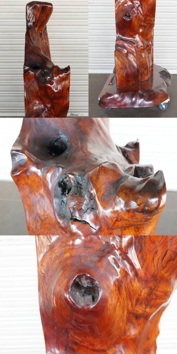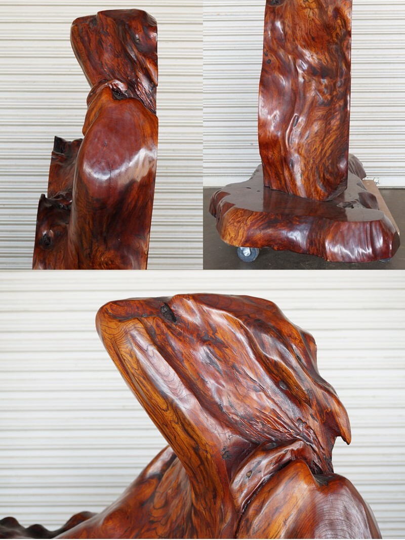 ■前ダ:【無垢材】欅 一枚板 衝立 最大板厚約33㎝ 高さ約70㎝ 幅約140㎝ 間仕切り オブジェ 置物 和室 和家具 パーテーション ★直接引取★■ 美しい杢目をもつ高級和家具材として知られる欅(ケヤキ)の「 一枚板 衝立 」になります。 最大板厚約33㎝と、存在感と重量感がありますので、 部屋の間仕切りとしてはもちろんオブジェとしても空間を盛り上げてくれる一品です。 ご自宅はもちろん、店舗演出など、上品な和の空間づくりにいかがでしょうか。 【欅 / けやき】 国内の広葉樹の中で第一の良材として古くから建築材・建具材、家具材・造作材として 幅広く用いられています。 大変美しい明瞭な木目とうっすらと褐色を帯びた木肌が特徴。 特に寺社建築に重用されたり、農家の大黒柱としても用いられており、 和家具の材料としては最高級の素材です。 玉杢、牡丹杢、泡杢などの模様が現われることがあり、 大変希少価値の高い素材として珍重されています。 【サイズ】 ・最大板厚 :(約) 33.0 ㎝ ・全体 :(約) 高さ70.0 × 幅140.0 ×奥行151.0 cm ※台座の取り外しができます。 中古のお品となります。 付属品は写真にあるものが全てです。 使用に伴う台座に色アセ、板と台座にすき間があるためグラつきがございます。 商品画像をよくご確認の上、ご参加ください。 [管理No.前24082671R1] |