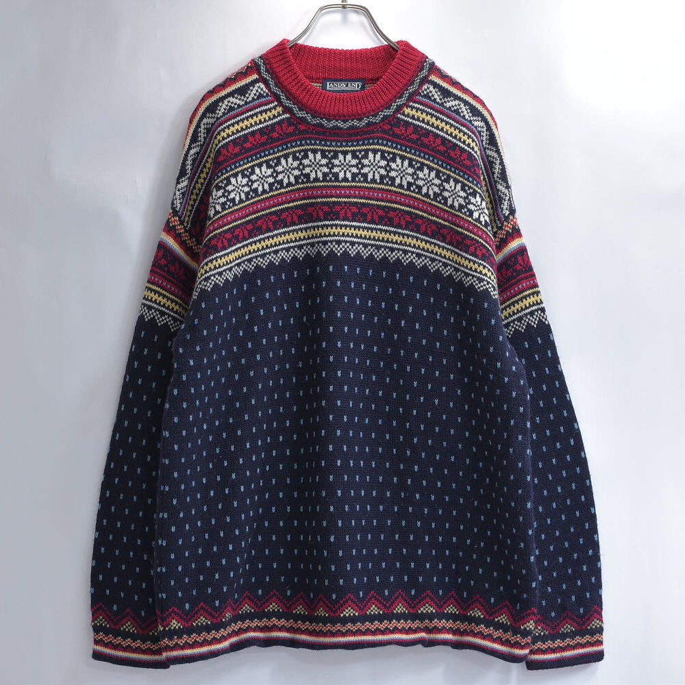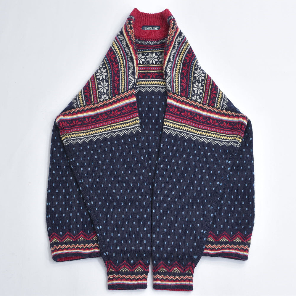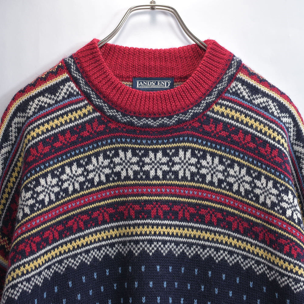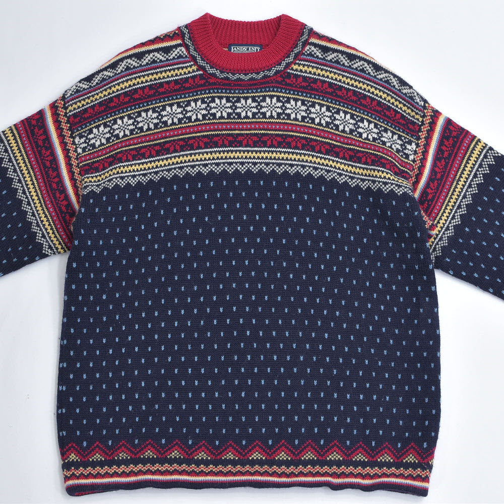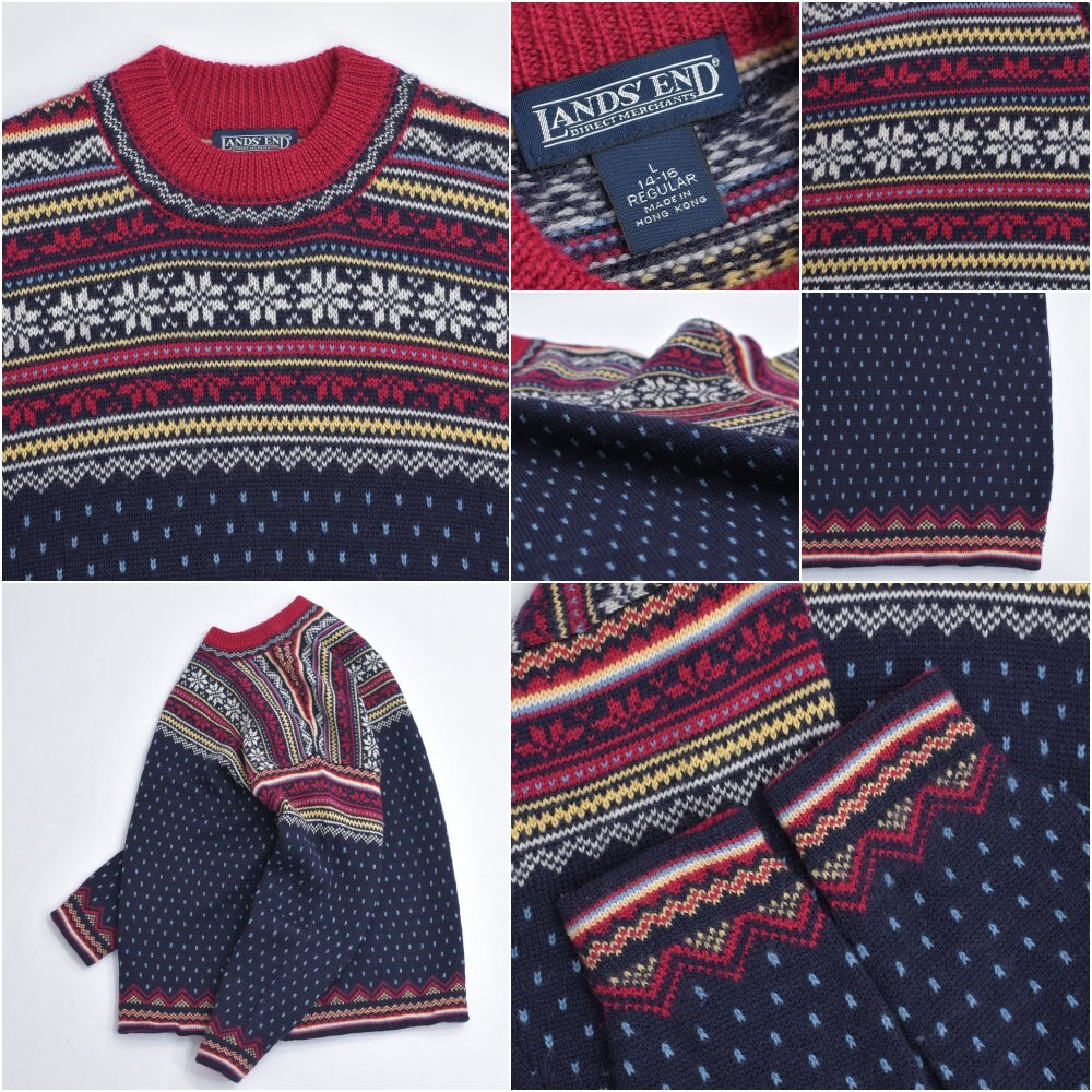 90s LANDS END ランズエンド ノルディック柄 プルオーバーニット ヴィンテージ 北欧 バーズアイ 雪柄 ウール ネイビー ビンテージ USA アメリカ古着 レディースXL~XXL相当| 出价者 | 信用 | 价格 | 时间 |