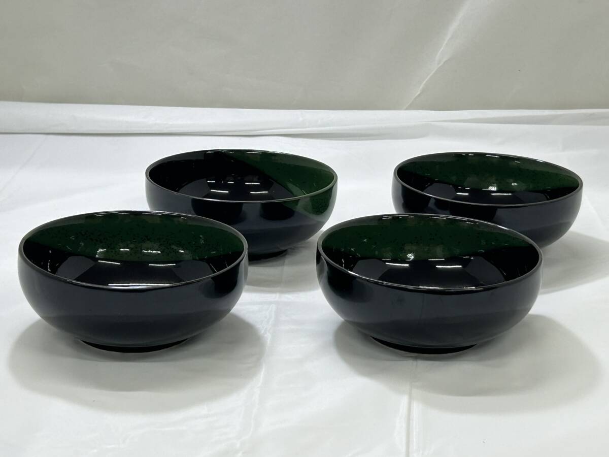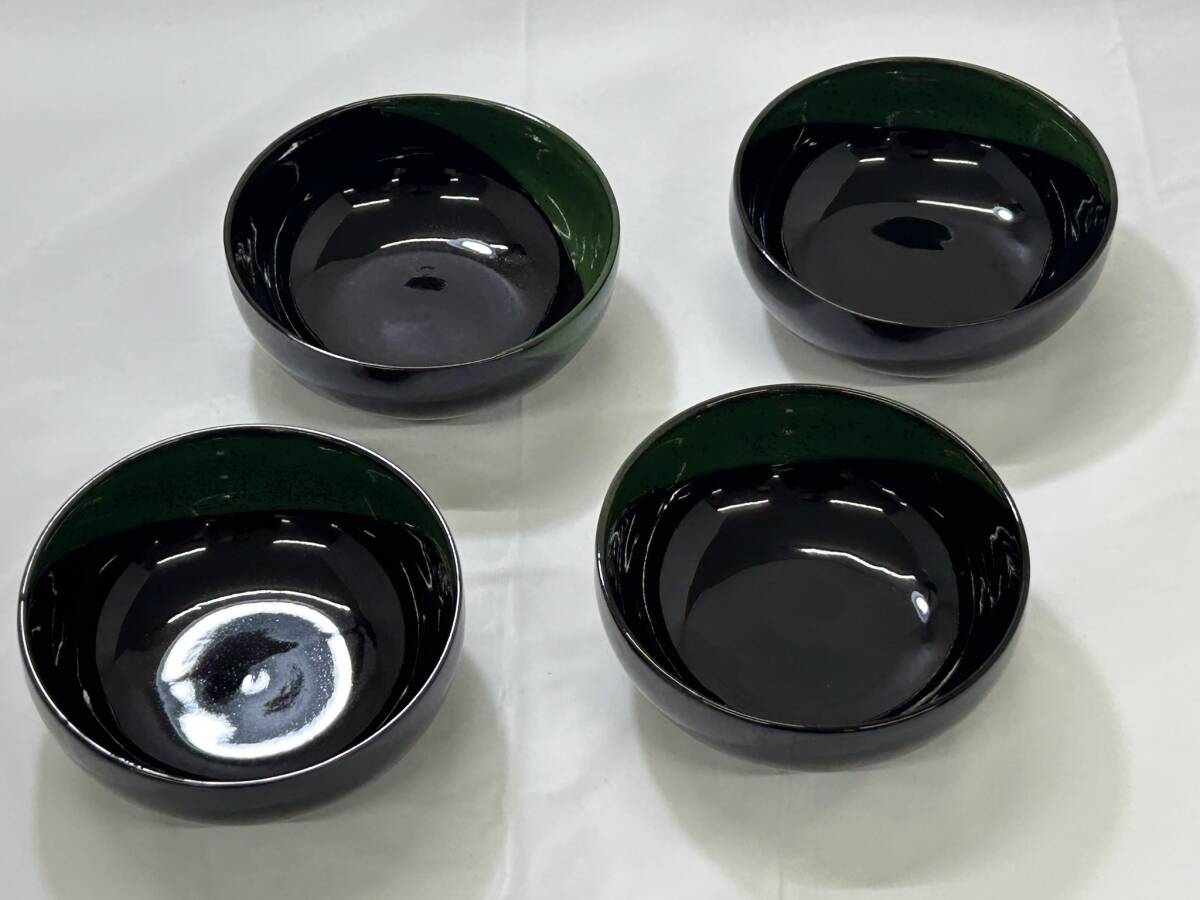 | 【外部-1108】小鉢/器/4個セット/緑/黒/食器/陶器(NI) |