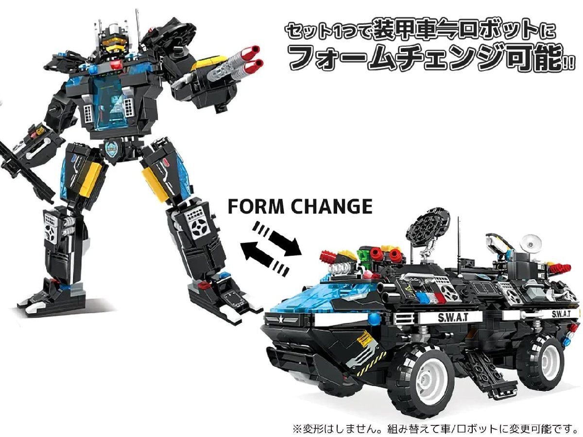 商品説明 ITEM INFO AFM SWAT シリーズ/掟破りのフォームチェンジ! AFM SWAT シリーズ 2WAY ハリケーン水陸両用装甲車 1130Blocksです。 楽しく組み立てて、カッコよく飾れるAFM ブロック SWAT シリーズです。 その名の通り、水上と陸上を走行できる水陸両用装甲車両です!そんな装甲車をブロックで再現!扉などの開閉はもちろん、レーザーガンなどの武装部分までこだわった作りになっています。 この装甲車は、なんと!掟破りのフォームチェンジが可能!組み換えるだけで全長28cmのロボットとして遊べます。 ブロックパーツにはSWAT刻印のものもあり、カスタムパーツとしても活躍してくれますよ! 1130個のブロックで構成されたキットは圧巻のスケールで、かなり作りごたえのあるキットです! 楽しく作れてインテリアとしてもグッド!ミリタリーマニアやブロック好きな方に是非! 商品基本情報・スペック ITEM SPEC ●商品名 : AFM SWAT シリーズ 2WAY ハリケーン水陸両用装甲車 1130Blocks ●商品番号 : M0098T ●ブランド : AFM ●付属品 : ミニフィギュア ●パッケージサイズ : 615mm×460mm×90mm ●完成サイズ(装甲車) : 約293mm×146mm×121mm ●完成サイズ(ロボット) : 約284mm×219mm×201mm ●素材 : ABS ●総ブロック数 : 1130 ●対象年齢 : 15歳以上 注意事項 ITEM NOTE ∇商品固有の注意事項 ※変形はしません。組み替えて車やロボットに変更できる商品となります。 ※光るブロックは付属していません。 ※小さなブロックが多く含まれています。誤って飲み込まないようにご注意ください。窒息などの危険があります。 ※誤飲の危険がありますので対象年齢を守り、小さなお子様だけでは絶対に遊ばせないでください。 ※当商品はレゴ(LEGO)商品ではございません。 ※弊社取扱商品以外への互換性はありませんのでご了承ください。 ※梱包は製品外箱に透明の緩衝材を巻いた簡易包装です。 ∇ご購入時の留意事項 ※商品はすべて点検してからのお届けになります。商品によってはパッケージの開封等を行う場合もございますことをご了承ください。 ※商品には万全を記しておりますが、万一不備な点がございましたら、お手数ですがお問い合わせフォームにてご連絡頂ますようお願い致します。なお、海外製品につきましては、輸入時についた若干の傷、痛み等が見られる場合がございます。 国内製品のような完全品をお求めの方はご遠慮下さい。 ※商品が適合外であった場合、またはお客様都合による交換・返品・返金は出来ません。よくお確かめの上、ご購入下さい。 ※モニター環境により、実際の商品の色と若干異なる場合がございますのでご了承下さい。 ※他サイトでも同時販売の為売り切れの際はご了承下さい。 ※売り切れの際は早急にご連絡させて頂きます。(当社休業日を除く) 関連商品 RELATED ITEM |