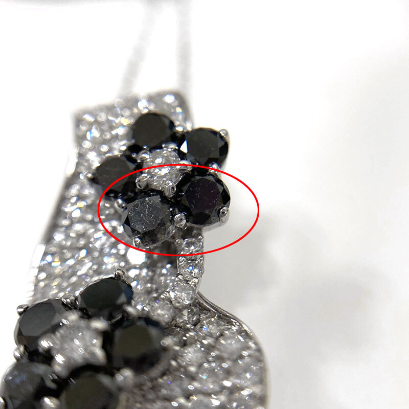 【中石・脇石】ブラックダイヤに表面のヒビあり。画像の2箇所が目立ち、それ以外の石はほとんどキズがありません