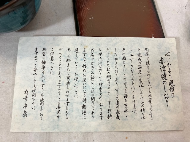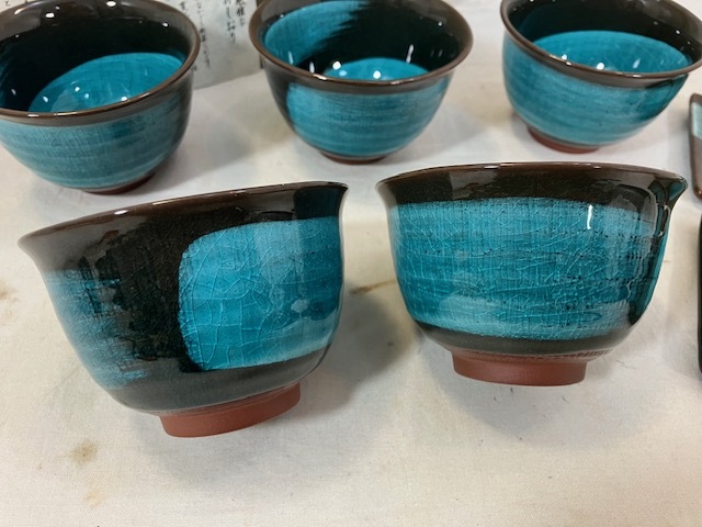 ご覧いただきありがとうございます。 以下が商品説明となりますので、しっかり読んでいただき、ご理解された上でご入札ください。 タイトル:赤津焼 京しみず 煎茶揃 湯呑 銘々皿 5客揃 付属品:本体 「赤津焼 京しみず 煎茶揃 湯呑 銘々皿 5客揃」となります。未使用品ですが保存品のため汚れがございます。また、箱にも傷や汚れがございます。綺麗な色の湯呑と銘々皿のセットとなっております。 湯呑は直径9×高さ6cm、銘々皿は8.7×8.7×高さ0.8cmくらいの大きさです。 このような品をお探しの方はご利用ください。 商品状態は画像で確認して下さい。 画像で確認できない、傷・汚れ・ラベルハガレ等がある場合が御座います。 |