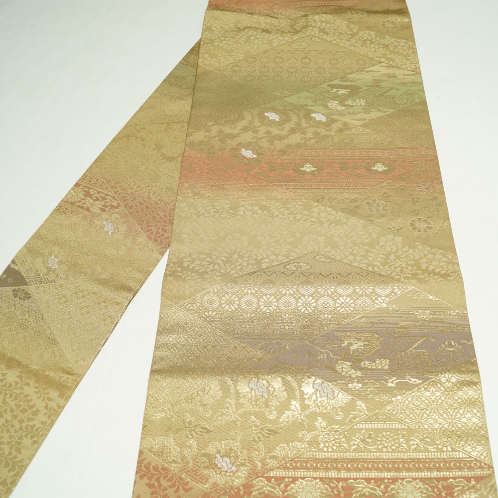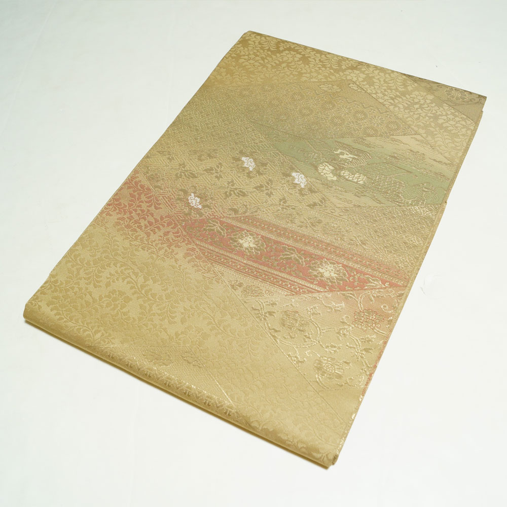 | 備 考 | ご着用時期を問わない柄行です。金糸が使用されたセミフォーマル向きの帯となりますので、色無地や江戸小紋、古典調の小紋などにお召しくださいませ。 |
