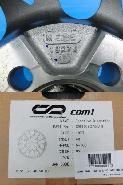 | ホイール詳細 | ホイール:共豊 KYOHO Creative Direction CDM1 クリエイティブディレクション エンケイ製造 サイズ:7J×18 インチ +48 PCD:5H100 ハブ径:約73φ カラー:グラファイトシルバー CAP:有り 専用ナット:無し コメント:今や数少ない日本製アルミホイール! 共豊ブランドのクリエイティブディレクション 【CD】 シリーズ CDM1になります! 一部の自動車メーカー純正アルミホイールやスポーツ系・ドレスアップ系のハイエンドモデルにしか見られなくなってきている日本製のアルミホイール。 そんな日本製のアルミホイールがお手頃価格で手に入る共豊 CDシリーズです! 製造は世界的に有名なエンケイ ENKEIが行っているモデルになります。 こちらはスポーティーで軽やかな印象を与える細身のメッシュデザインとなっています。 スポーティー系のカスタムにオススメのモデルです! ※※未使用品ではございますが、長期展示品につき細かな拭きキズ等がある他、裏面にウエイトの糊痕が残っています。完全な新品をお求めの方はご遠慮ください※※ |
