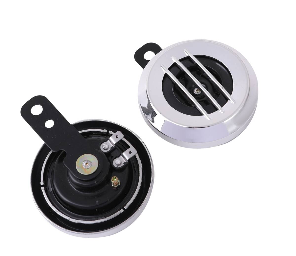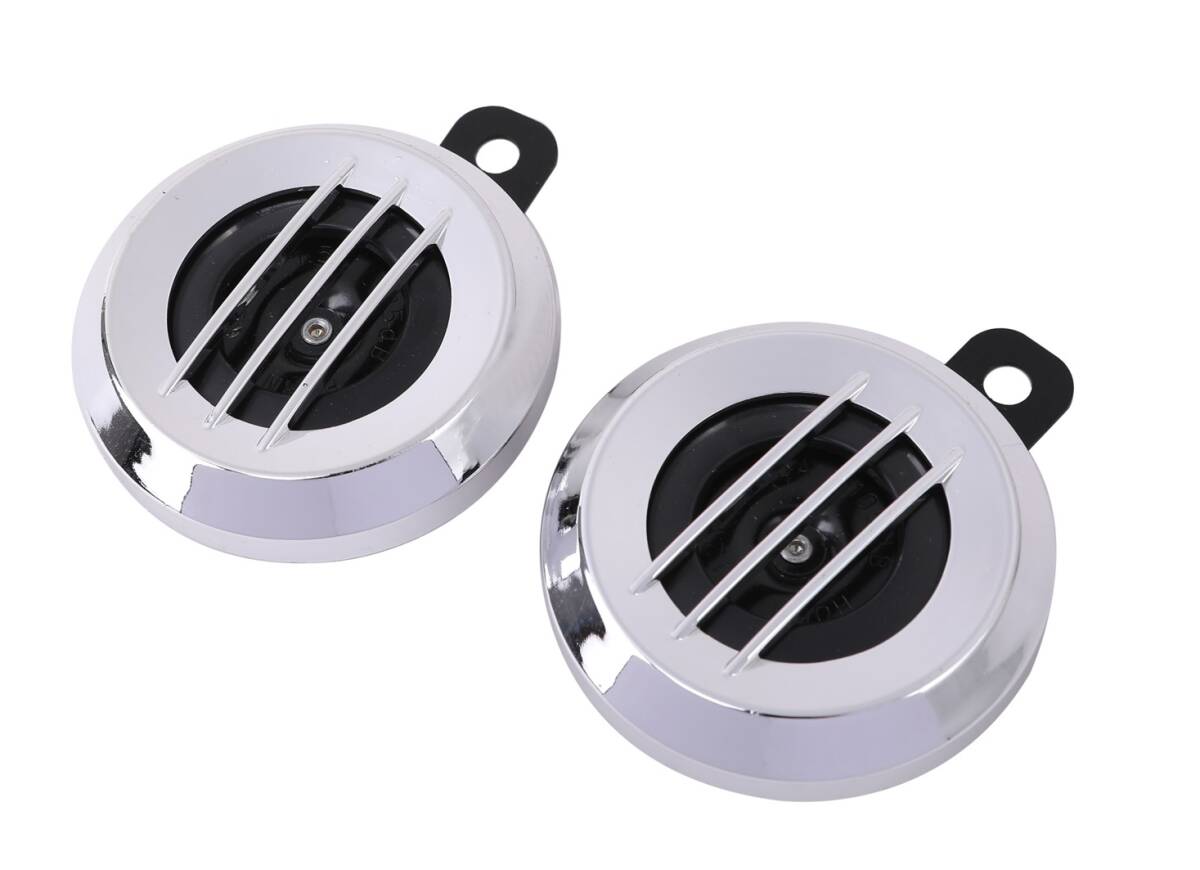 | 12V フィン メッキ ホーン 2個 セット ZRX400 エストレヤ XJR1300 イナズマ インパルス CB750 XJR400 ゼファー CB400SF 等 汎用 社外品 カスタム パーツ | ||||||||||||||||||||