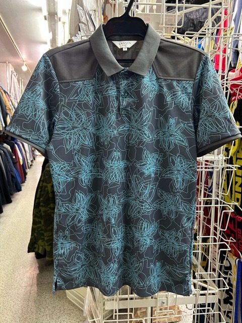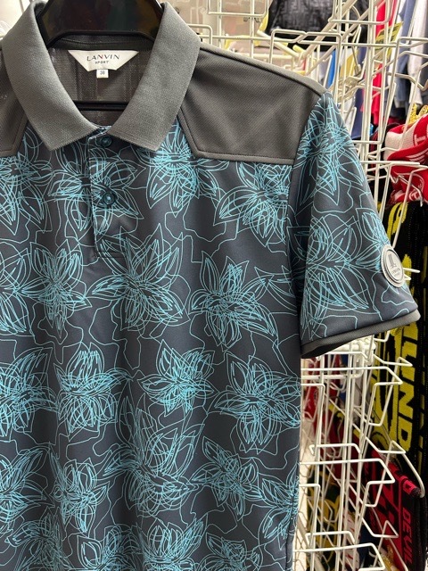| ランバンスポール LANVIN SPORT デサント 花柄総柄 ポロシャツ 半袖 灰38 日本製 | |||||||||||