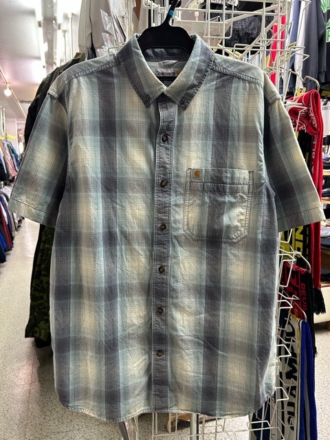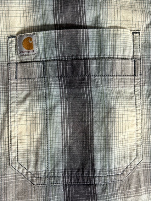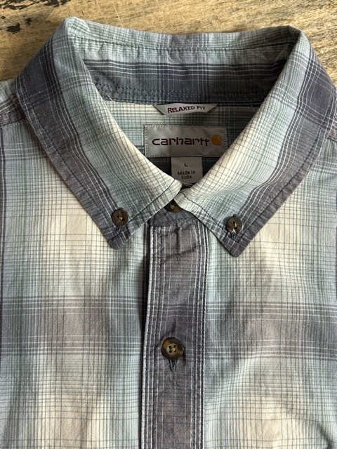 | カーハート リラックスフィット ボタンダウンシャツ チェック 半袖 ポケット 水色 白 灰 L | |||||||||||