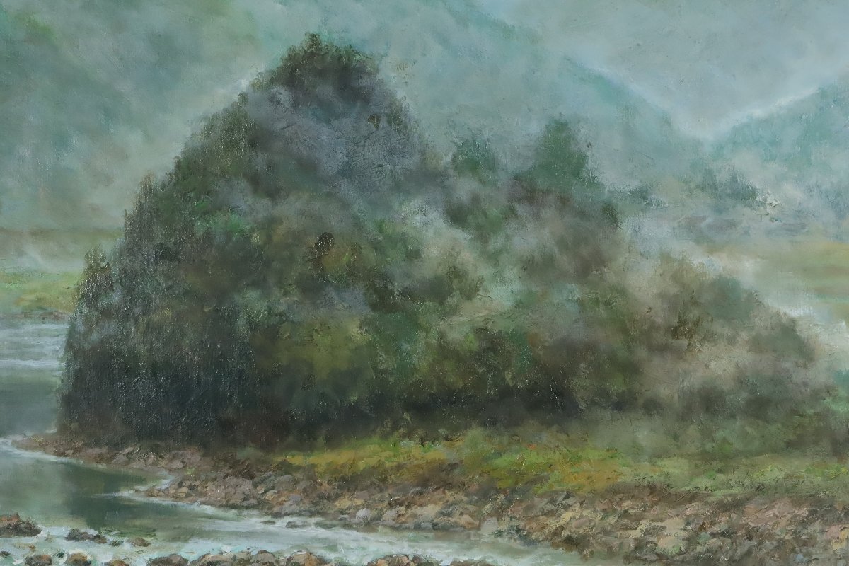 | ・尹熙寿「朝霧(那馬渓)」50号 1980年制作 油彩画 大型 額装品 /油絵 風景画 韓国人画家 大分県 |