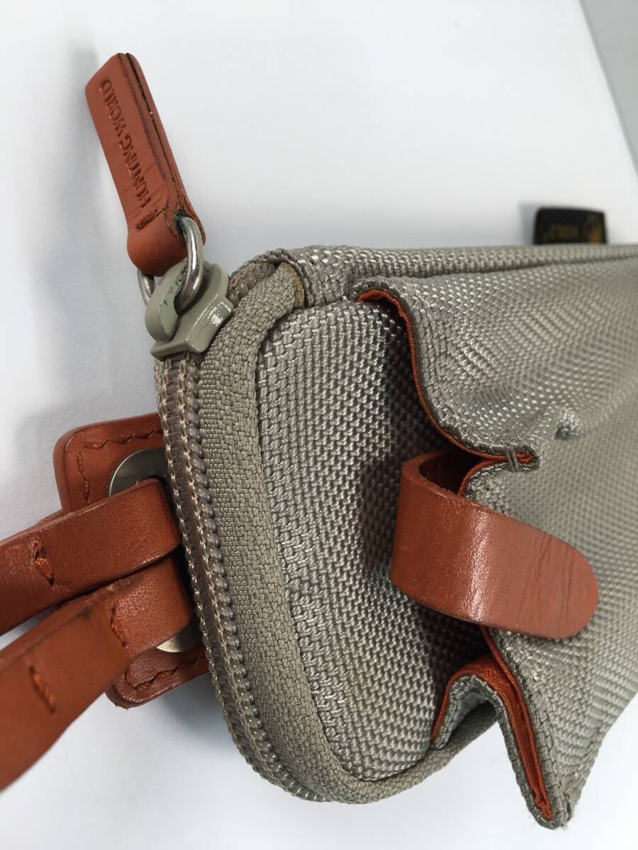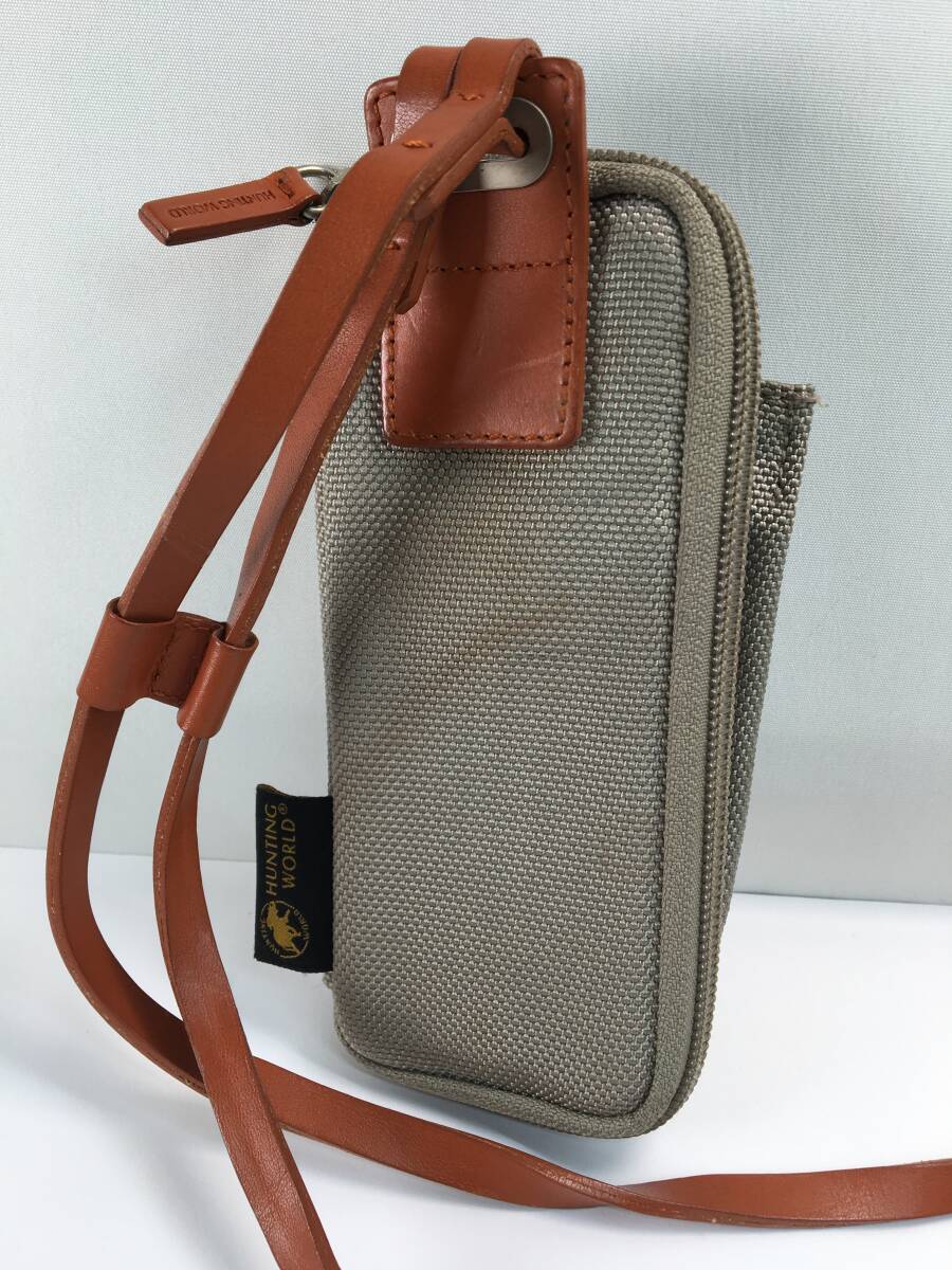 希少レア良品 ハンティングワールド HUNTING WORLD ショルダーバッグ キャンバスxレザー 携帯電話 ポーチ ポシェット 小物入れ[パケ無料]