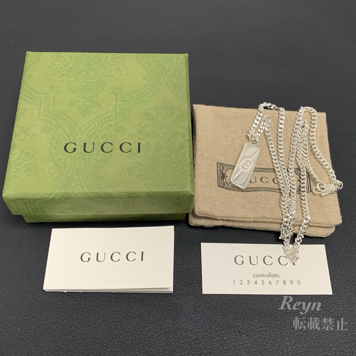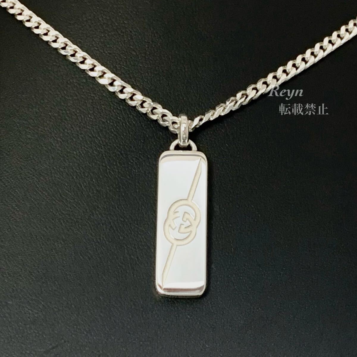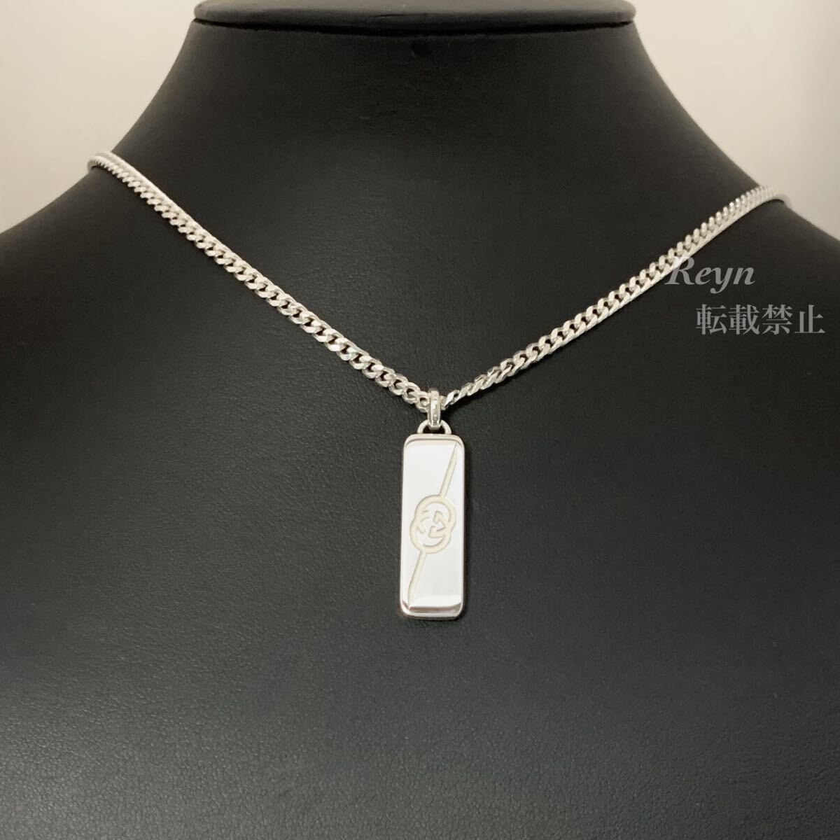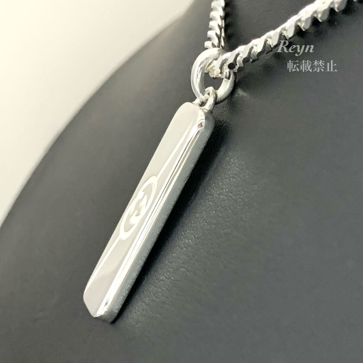 縦型のペンダントトップにダイアゴナルインターロッキングGのエングレービングが施された、新感覚のお洒落でカッコいいネックレス