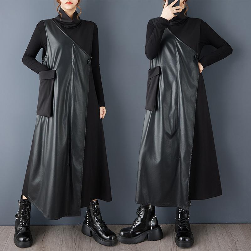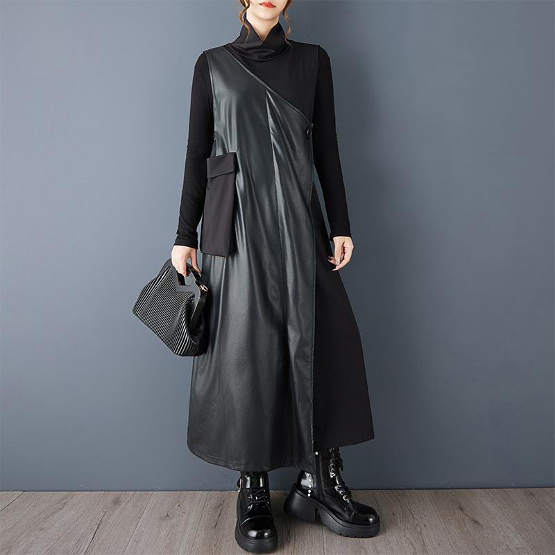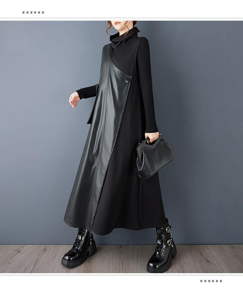 大きいサイズ 新品 秋冬 PUレザー ベスト ワンピース 黒 レイヤード ロング ゆったり| 出价者 | 信用 | 价格 | 时间 |