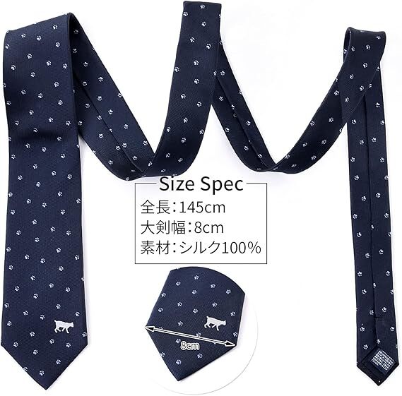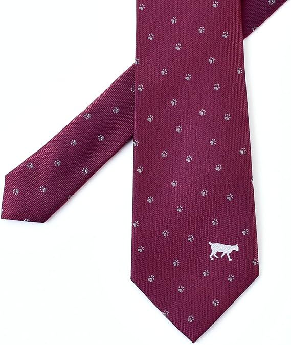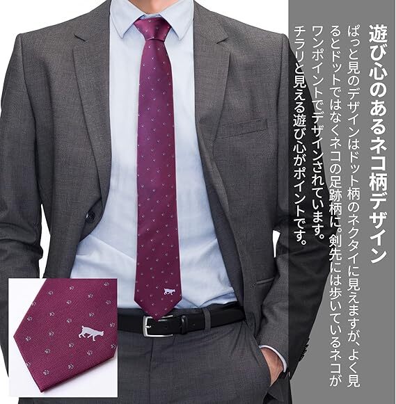 [Rachel] アニマル ネクタイ ネコ柄 犬猫 ドット 総柄 シルク100% ジャガード織 撥水効果 ワイン [浏览原始页面]