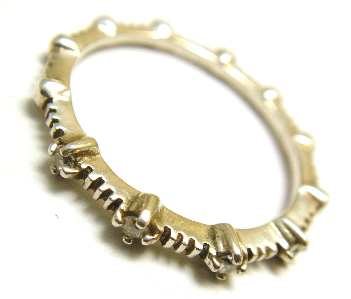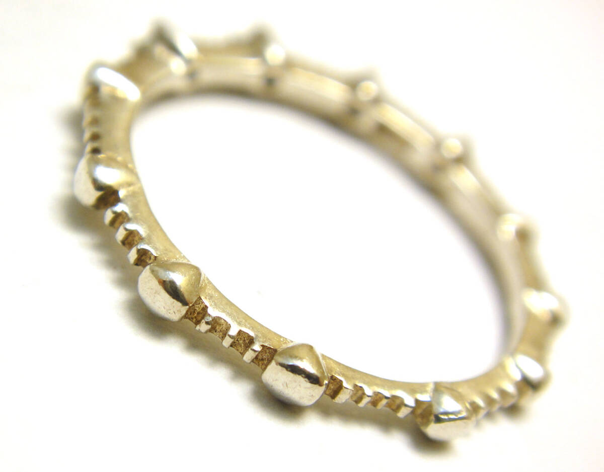 | USED SILVER925 リング リングサイズ:♯13号 中石:キュービックジルコニア 脇石:- サイズ:(最大幅)約2.3mm(最小幅)約1.5mm 総重量:約1.2g 地金:925S (刻印あり) ブランドメーカー名:- ※付属品は御座いません。リング本体のみの出品になります。 分散光の高い小さなジルコニアをステーション状に セッティングした細めのシルバー925製ヴィンテージリングの 出品になります。 状態:小傷や傷など全体的に使用感が御座います。 銀製となりますので黒ズミなどがある場合が御座います。 リングの変形は御座いません。 出品前に超音波洗浄機にて洗浄済です。 USED商品ですので新品をお求めの方や神経質な方からのご入札 お断りさせて頂きます。 素人採寸ですので約表記とさせて頂きます。 また個人出品ですのでノークレームノーリターンにての お取引にご理解の上ご入札下さい。 箱や保証書などは御座いません。 モニターの環境によって色見が違って見える場合がございますが、 写真にてご確認下さい。 撮影時に映り込みなどある場合が御座います。 ◎お支払い・発送方法 ヤフーかんたん決済のみとさせて頂きます。 振込み金額は商品+送料の合わせた金額となります。 また同梱希望の場合は落札後にて必ずお取引ナビから メッセージをお願い致します。 ---------- ネコポス---------- ヤマト運輸 ネコポス 全国一律300円 ポスト投函になります。 発送から1日から2日で到着します。 ※追跡可能 ※日時指定不可 ------------宅急便コンパクト------------ 普通配送送料宅急便全国一律(北海道・沖縄・離島除く)800円になります。 北海道、沖縄、離島に配送の方は送料1000円になります。 ※追跡可能 ※日時指定可能 ※☆ネコポスですが、サイズ規定以内に収める為 簡易包装になってしまいますのでご了承下さい。 ◆ヤフーかんたん決済 (ご落札後のお振込み期日にご注意ください。) 落札金額+送料の合計金額をお振込みください。 消費税は一切かかりません。 おまとめ発送可能となりますので、同梱ご希望の場合は最初の ご落札商品のお取引ナビにてメッセージの方お願い致します。 また同梱の際は数量やお取り置きの日数なども御座いますので ご了承くださいませ。 | |||