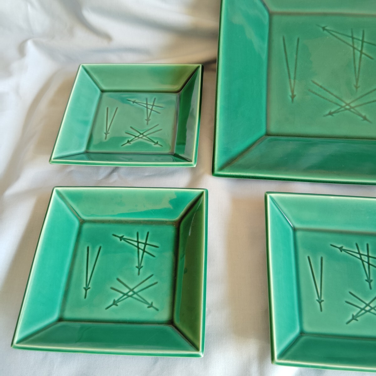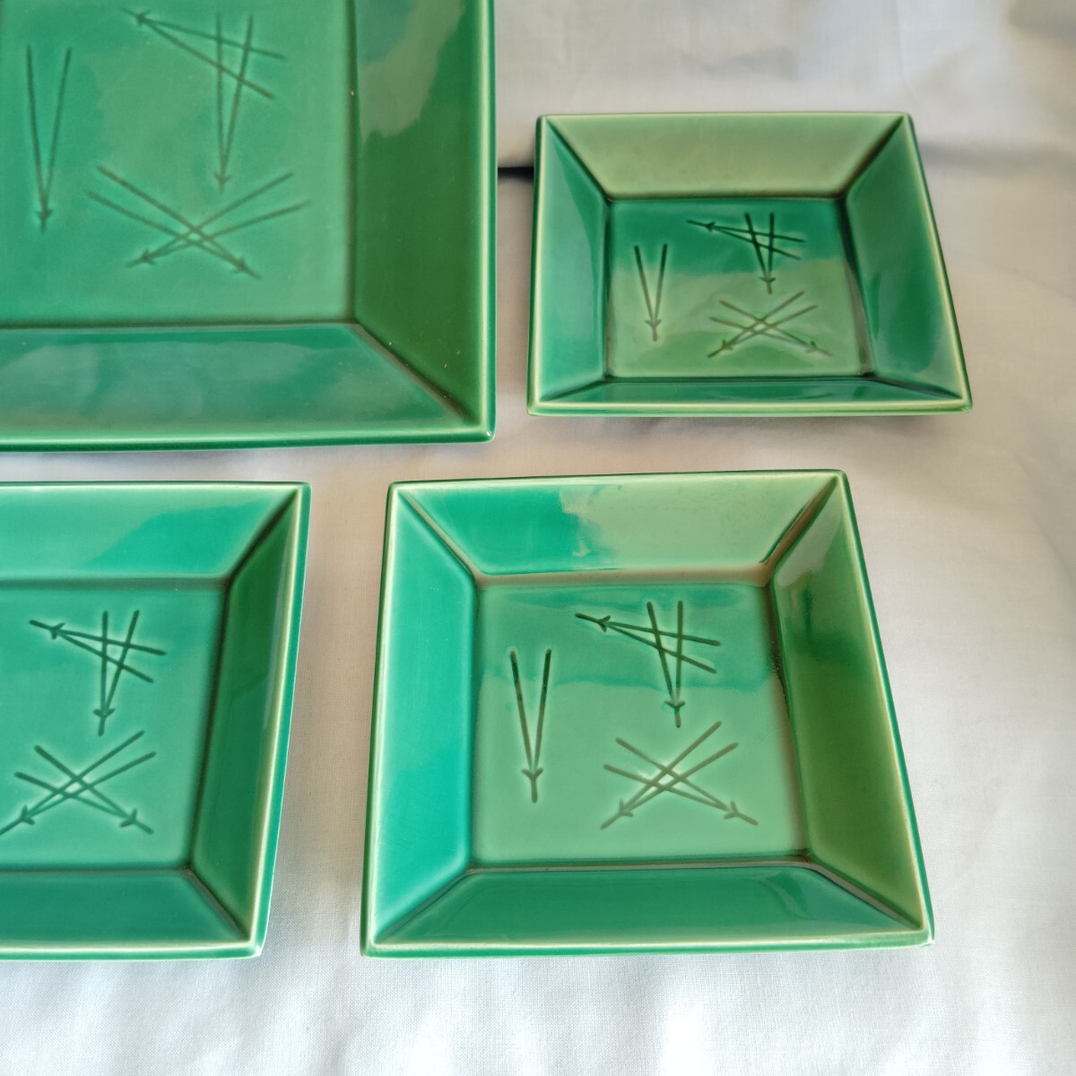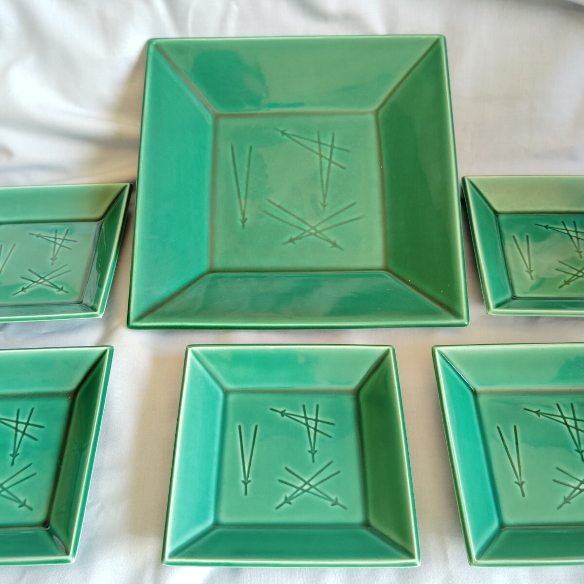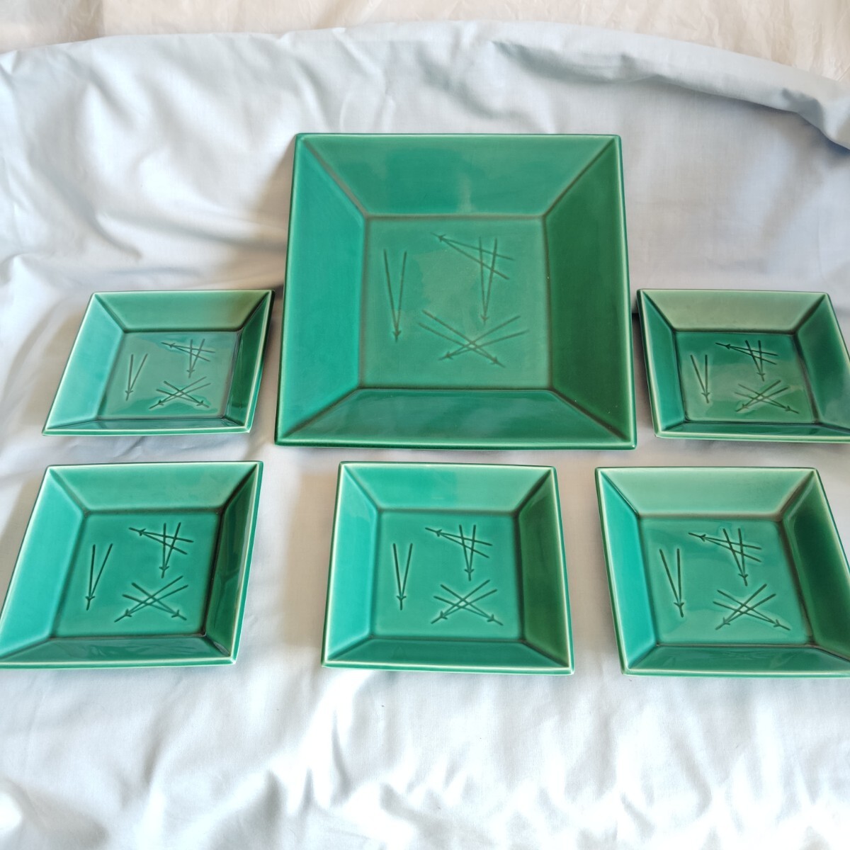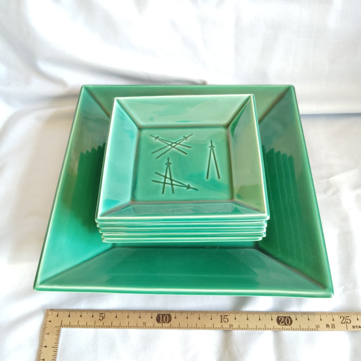 和食器 洋食器エメラルドグリーンの美しい陶器のスクエアプレート6枚セットです。大小異なるサイズで、和食にも洋食にもお使いいただけます。食卓を華やかに彩るデザインです。| 出价者 | 信用 | 价格 | 时间 |